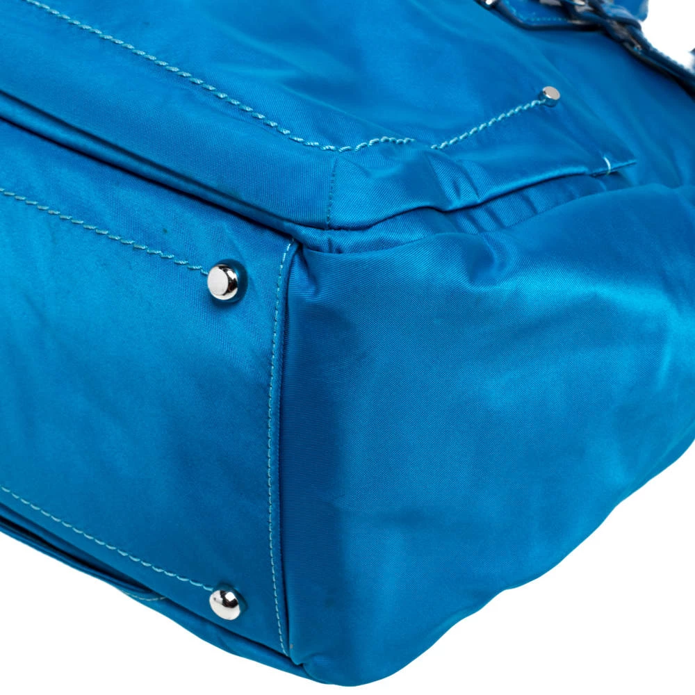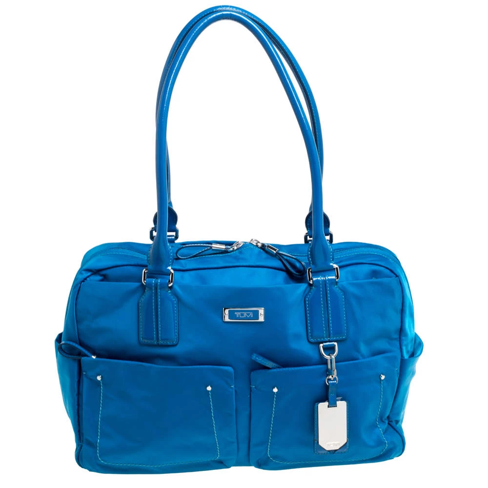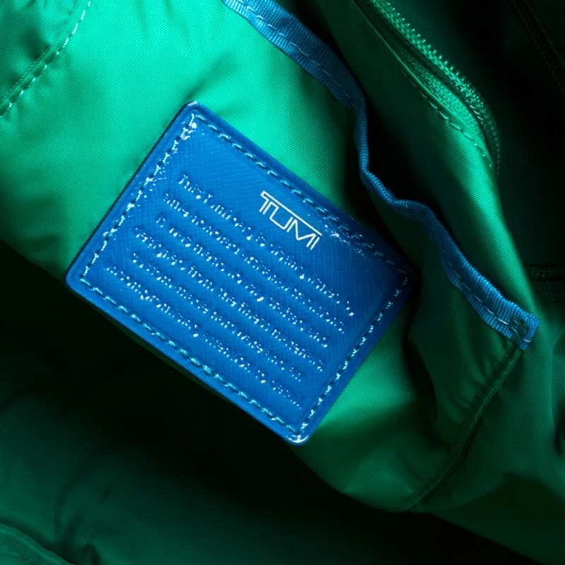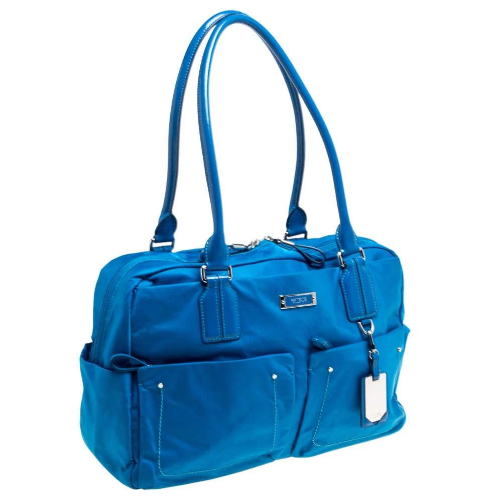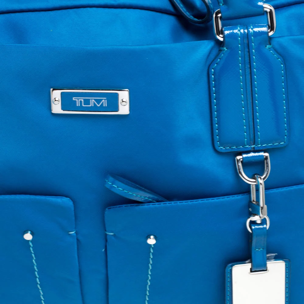 Made from bright blue nylon and leather with a smooth nylon-lined interior, this duffel bag can effortlessly be fashioned with your travel looks. The excellent craftsmanship of this TUMI piece ensures a brilliant finish and a rich appeal. It is complete with pockets on the exterior, dual top handles and a matching wallet.