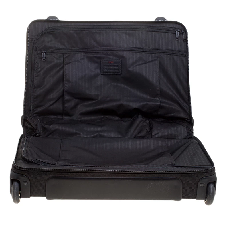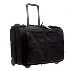 Travel in style with the Tumi Black Ballistic Nylon 2 Wheeled Carry-on Alpha Garment Bag. With a spacious interior that can carry all your essentials, this bag is ideal as a carry on luggage for a short trip or as an overnight bag in case of emergencies.