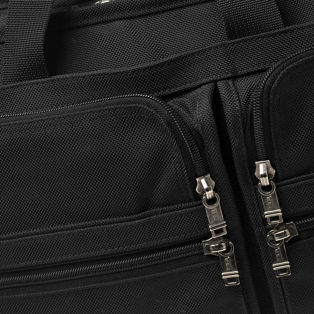 From TUMI, this Organizer Laptop briefcase will prove to be highly functional and useful to you. It is made from black Ballistic nylon and comes with an expandable feature. It has silver-toned hardware and dual handles. Keep your personal items safe in this briefcase.