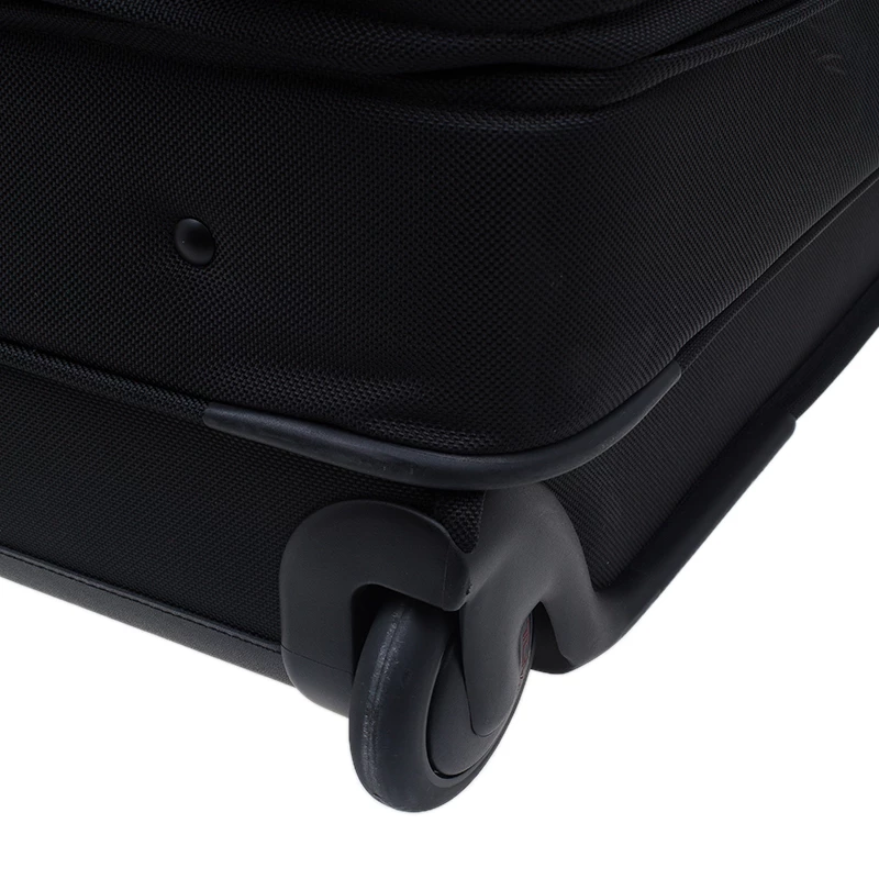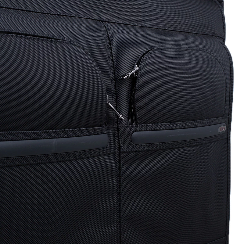 Designed for the international business traveler, this Tumi elevates your travel experience with – the pinnacle of our design innovation, engineering, functionality and performance. Crafted with Tumi’s patented ballistic nylon, it offers increased packing capacity, sleeker profiles, smarter functionality and easier maneuverability. The construction method that reinforces the case frames for superior strength and longevity, impact-resistant caps that provide additional corner durability, and super-tough and virtually damage-proof X-Brace 45® handle system. The interior is spacious and roomy and houses a laptop compartment and a removable garment sleeve for short overnight stays. There are plenty of organizer pockets and a removable accessory pouch.