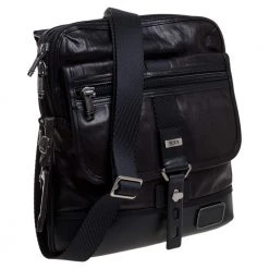 Trust this TUMI messenger bag to offer functional ease and a comfortable carrying experience. Crafted beautifully using leather, the bag has multiple pockets and shades of black and dark brown. It is equipped with an adjustable shoulder strap and a spacious nylon interior.