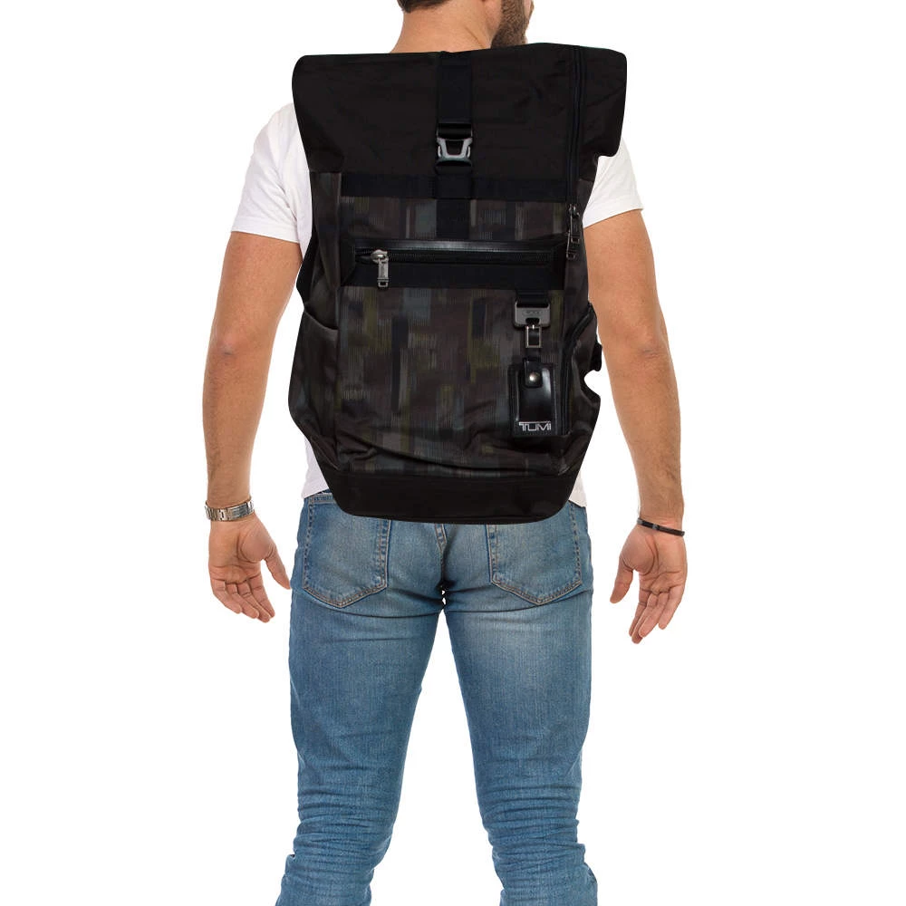This lightweight and reliable backpack by TUMI is made from nylon into a functional design. The bag features a roll-top with safety buckle fastening, zip pockets on the exterior, and a spacious main interior. It is complete with a flat top handle and adjustable shoulder straps.