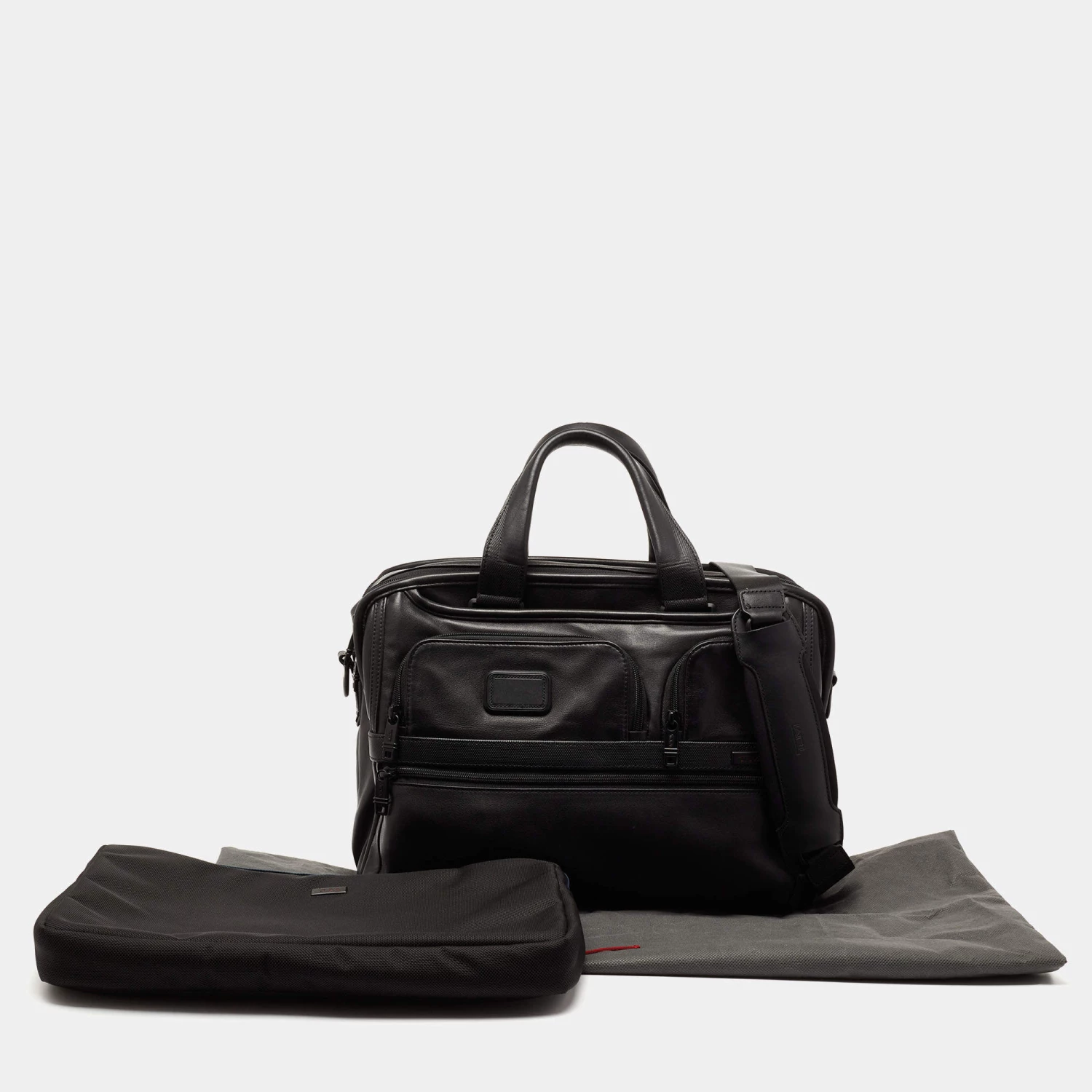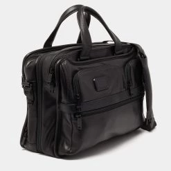 From TUMI, this Organizer briefcase laptop bag will prove to be highly functional and useful to you. It is made from black leather on the exterior and comes with an expandable feature. It has black-toned hardware and dual handles. Keep your personal items safe in this briefcase.