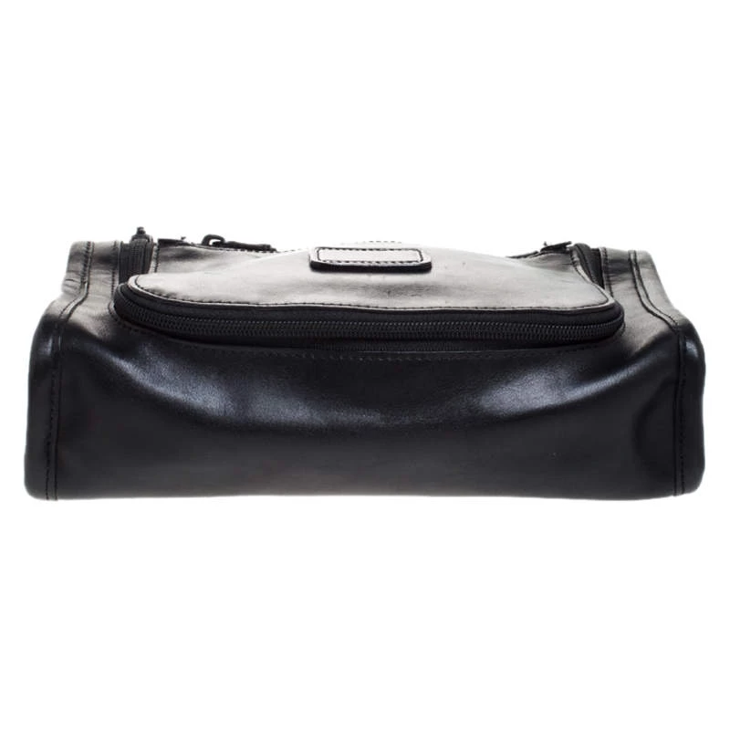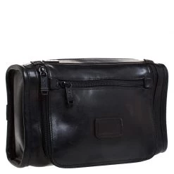 Crafted from durable black leather, this Alpha 2 pouch will be your most handy companion, especially while travelling. Featuring a simple silhouette, this pouch features multiple zipped compartments lined with fabric and it ensures ample room to hold your toiletries and more.