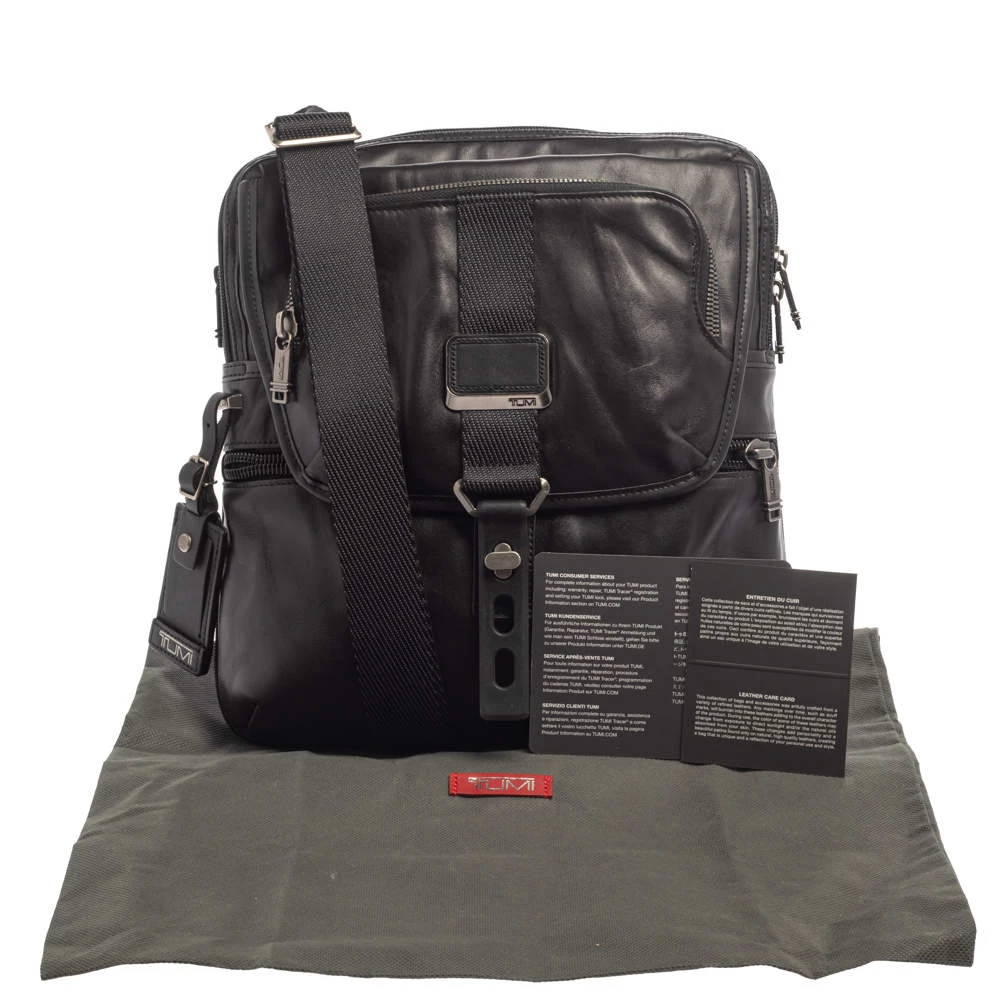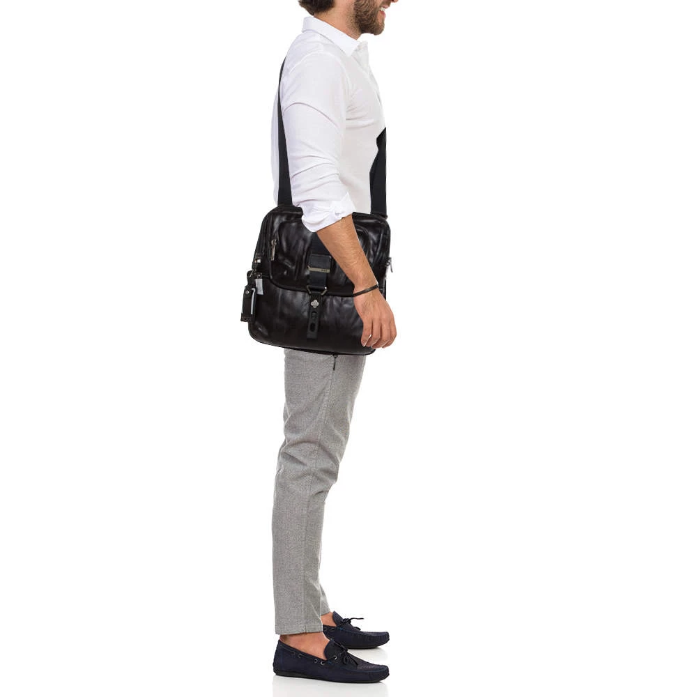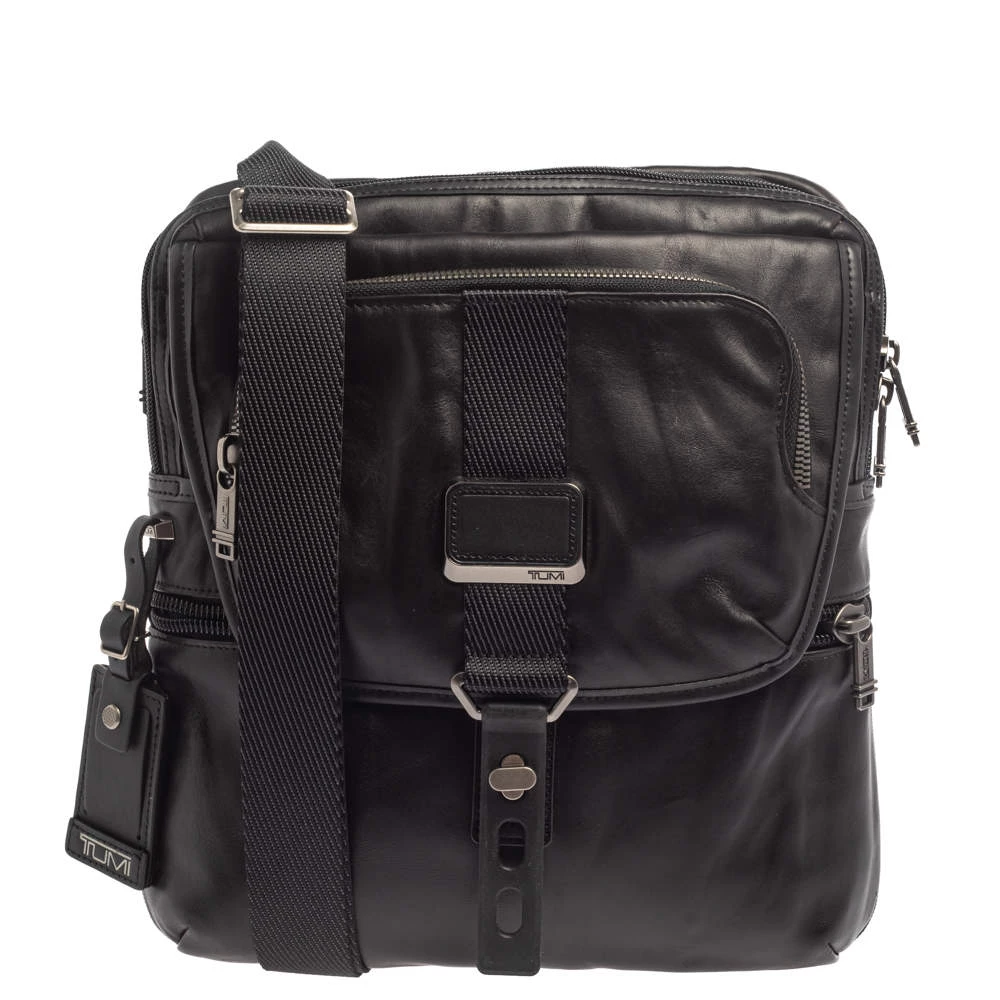 Trust this TUMI crossbody bag to offer functional ease and a comfortable carrying experience. Crafted beautifully using leather, the bag has multiple pockets and a tag. It is equipped with an adjustable shoulder strap and a spacious nylon interior.