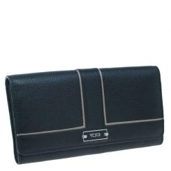 This Tumi wallet is the perfect pick to organize your things. Crafted from leather, this black wallet is accented with a flap closure with concealed fastening and a brand label. The interior houses card slots and open compartments.