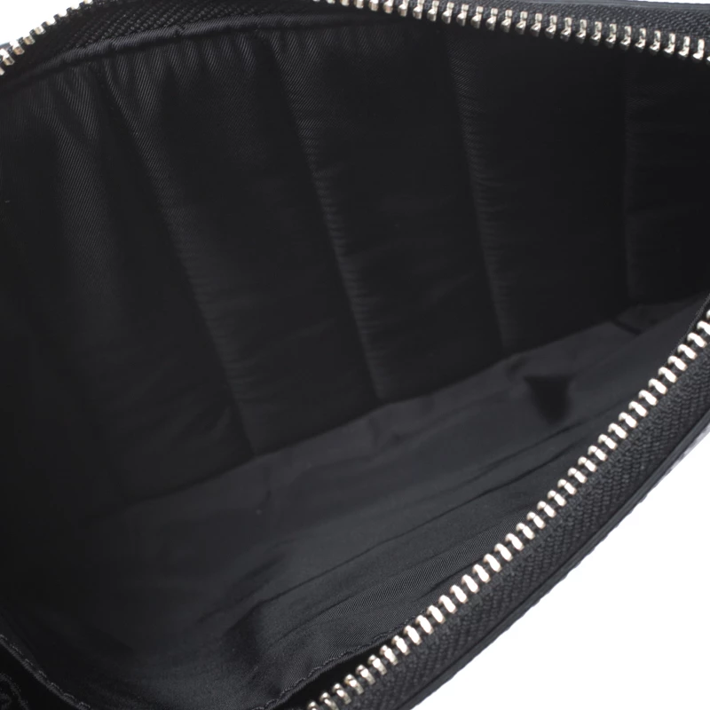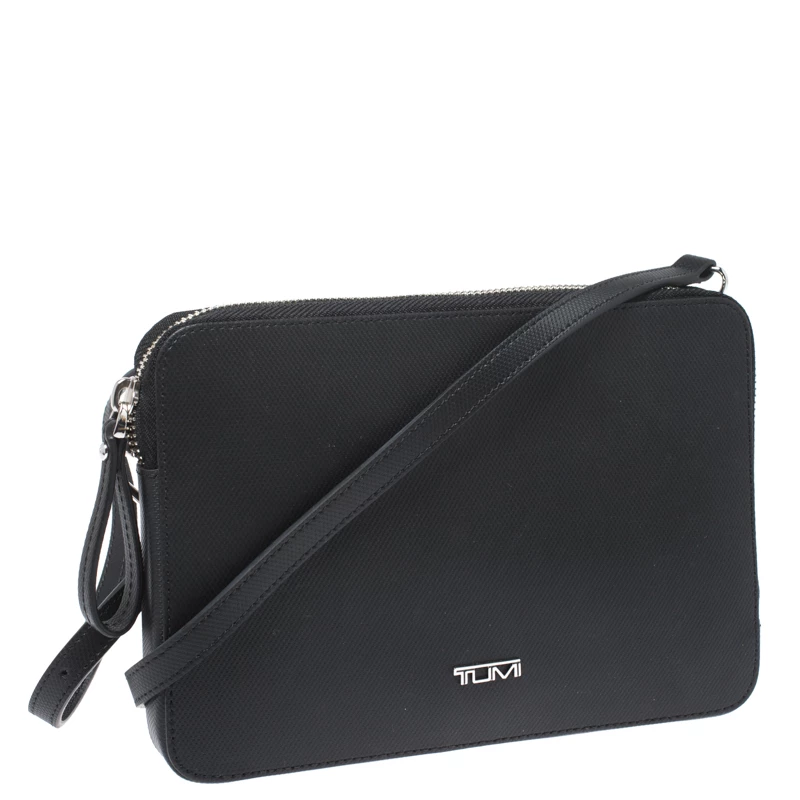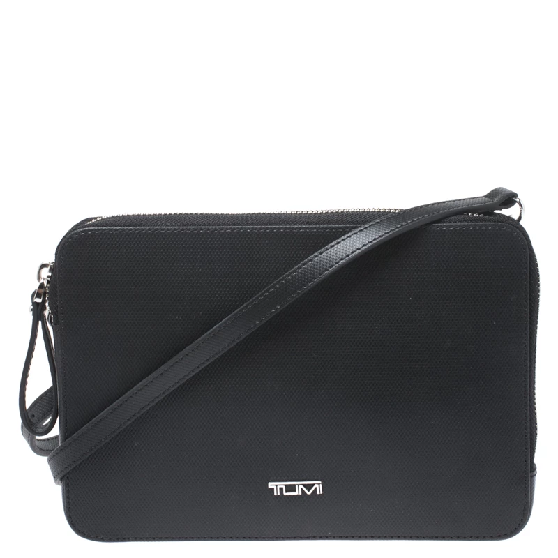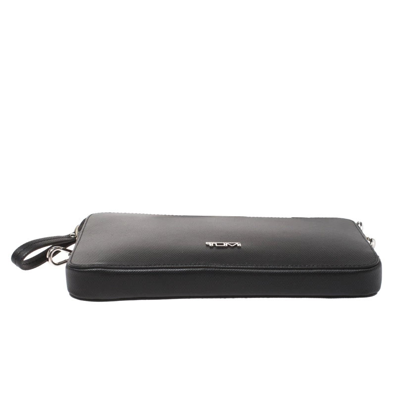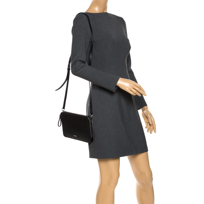 This stylish and functional chain pouch comes from the house oof Tumi. Crafted from quality leather, this black creation is great for everyday use and travelling. It features a zip closure, brand logo on the front and a long strap. It has a nylon-lined interior with enough space for essentials. It is finished with silver-tone hardware.