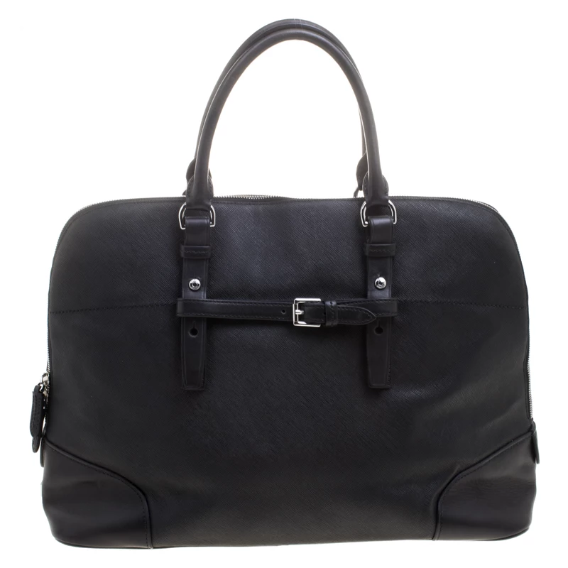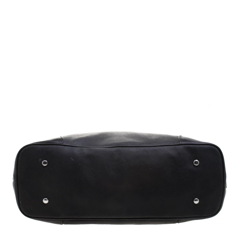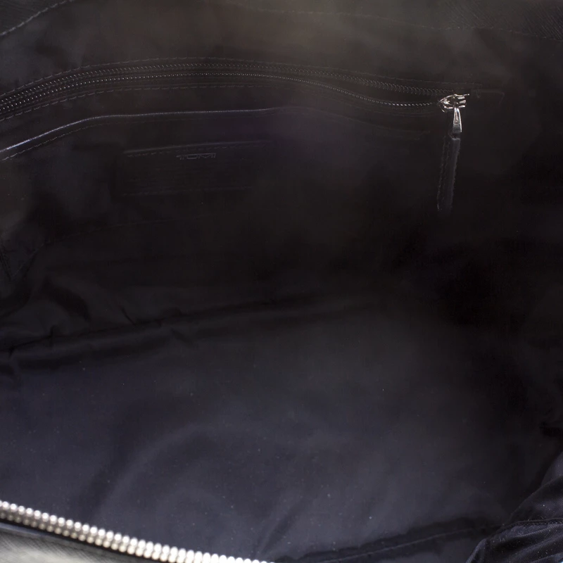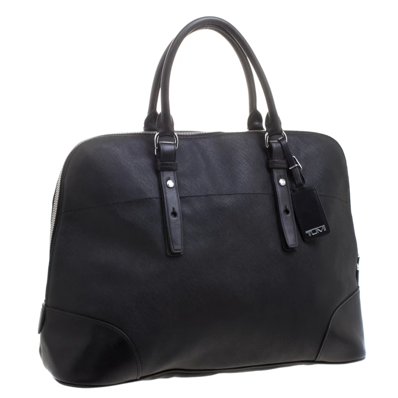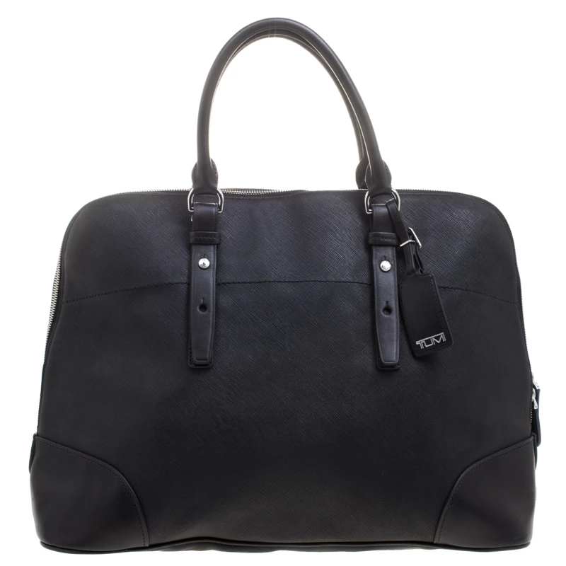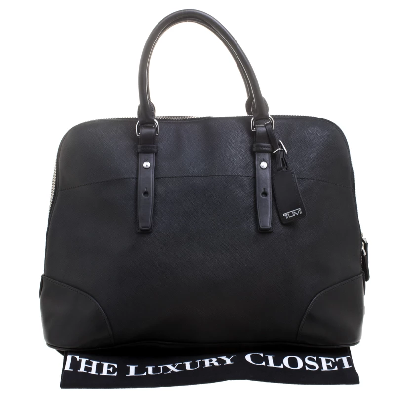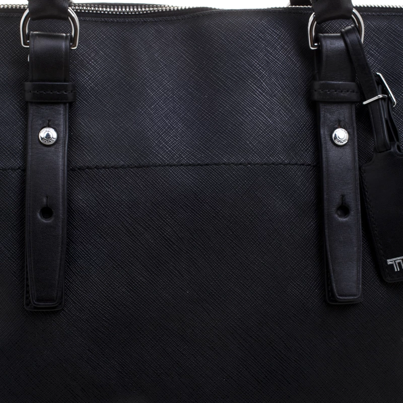 Featuring top handles and a black exterior made of leather, this Tumi satchel exudes just the right amount of sophistication. The bag features an elegant structure and comes equipped with a capacious nylon-lined interior and protective metal feet. This satchel is ideal for everyday use.