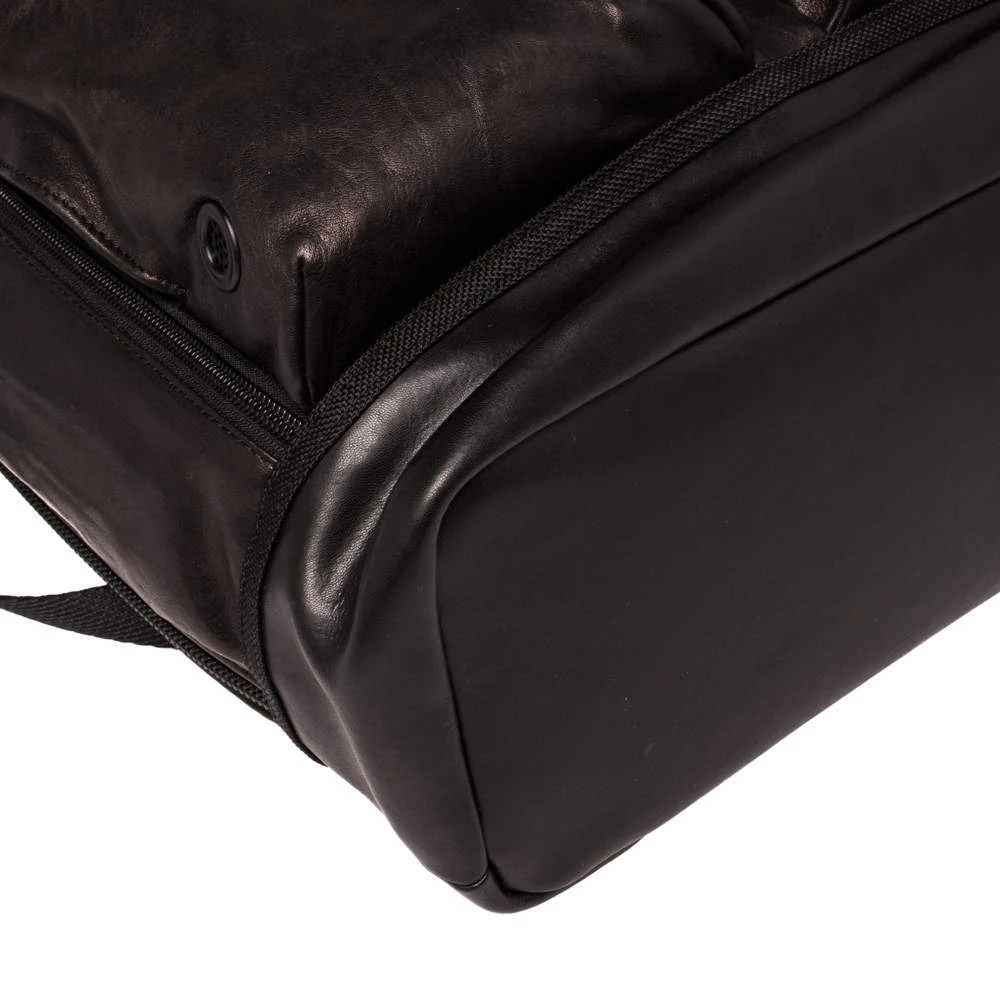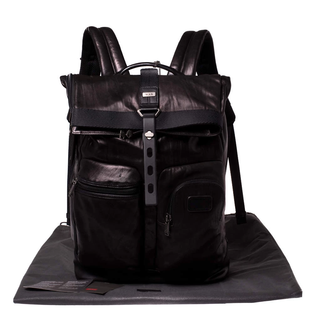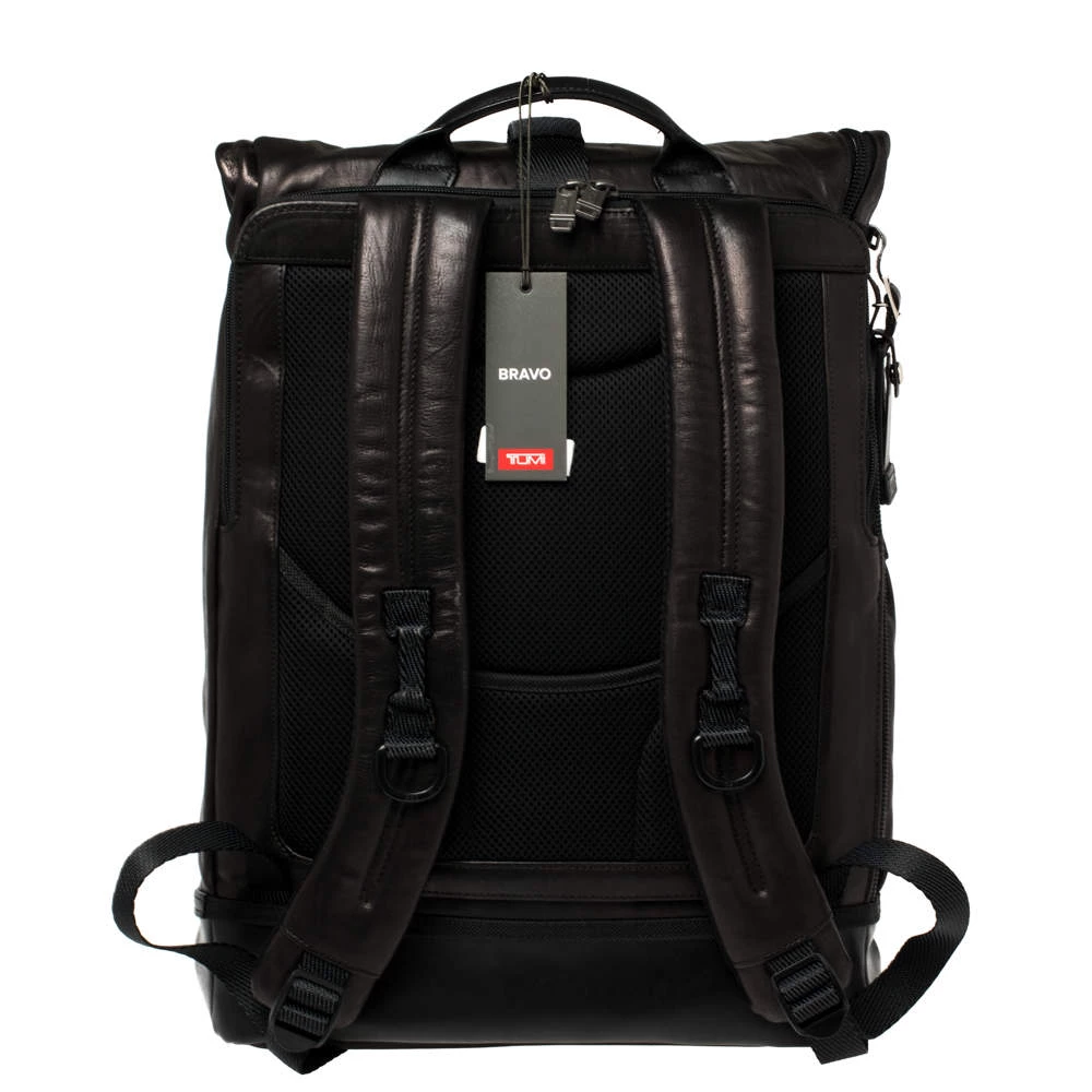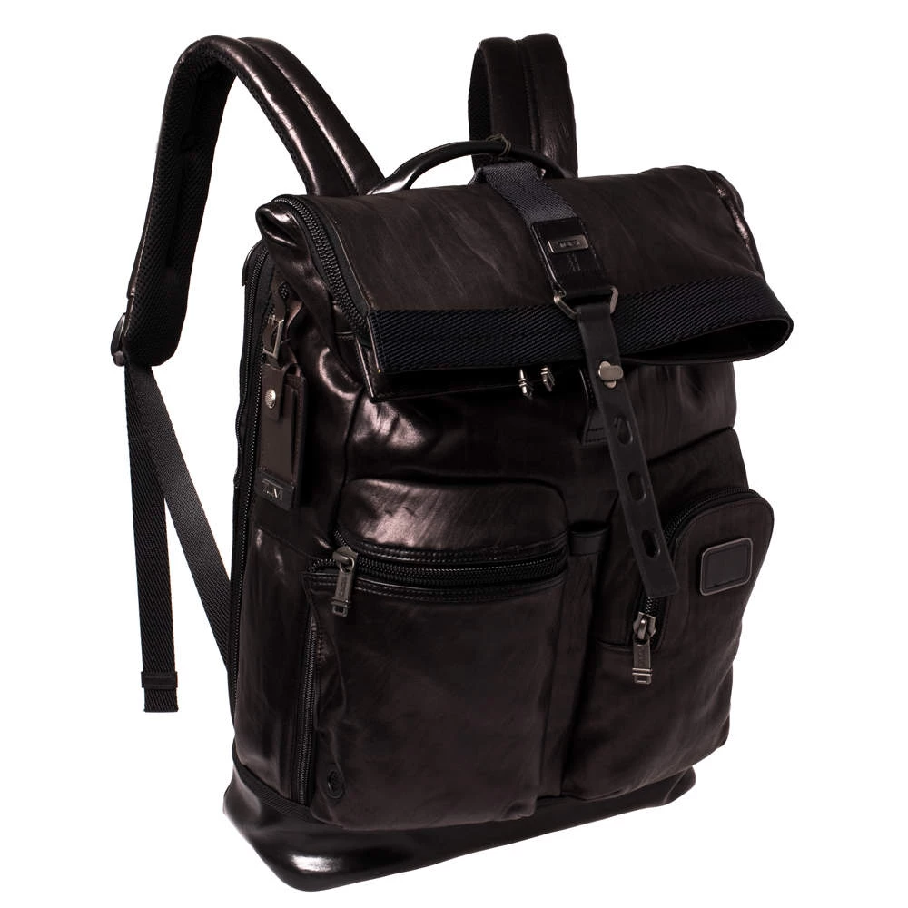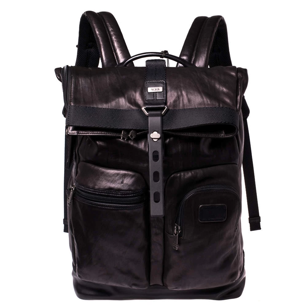 This durable and reliable backpack by TUMI is made from leather into a functional design. The bag features a roll top, zip pockets on the exterior, and a spacious main interior. It is complete with a flat top handle and adjustable shoulder straps.
