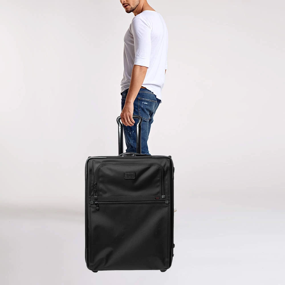 Employing high-grade materials and innovative construction to deliver impeccable products that aim at functional ease, TUMI is the brand travelers can trust. This expandable luggage case is crafted in nylon and equipped with exterior pockets, a spacious compartment, telescopic handle, and 2 wheels.