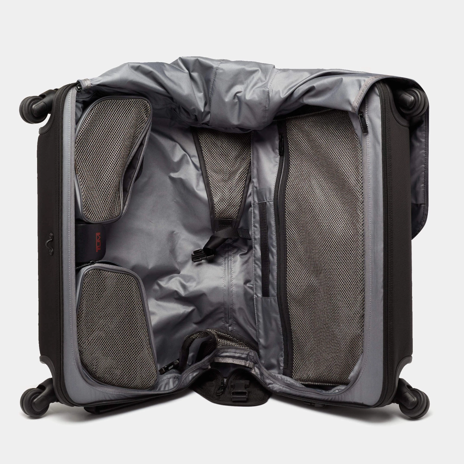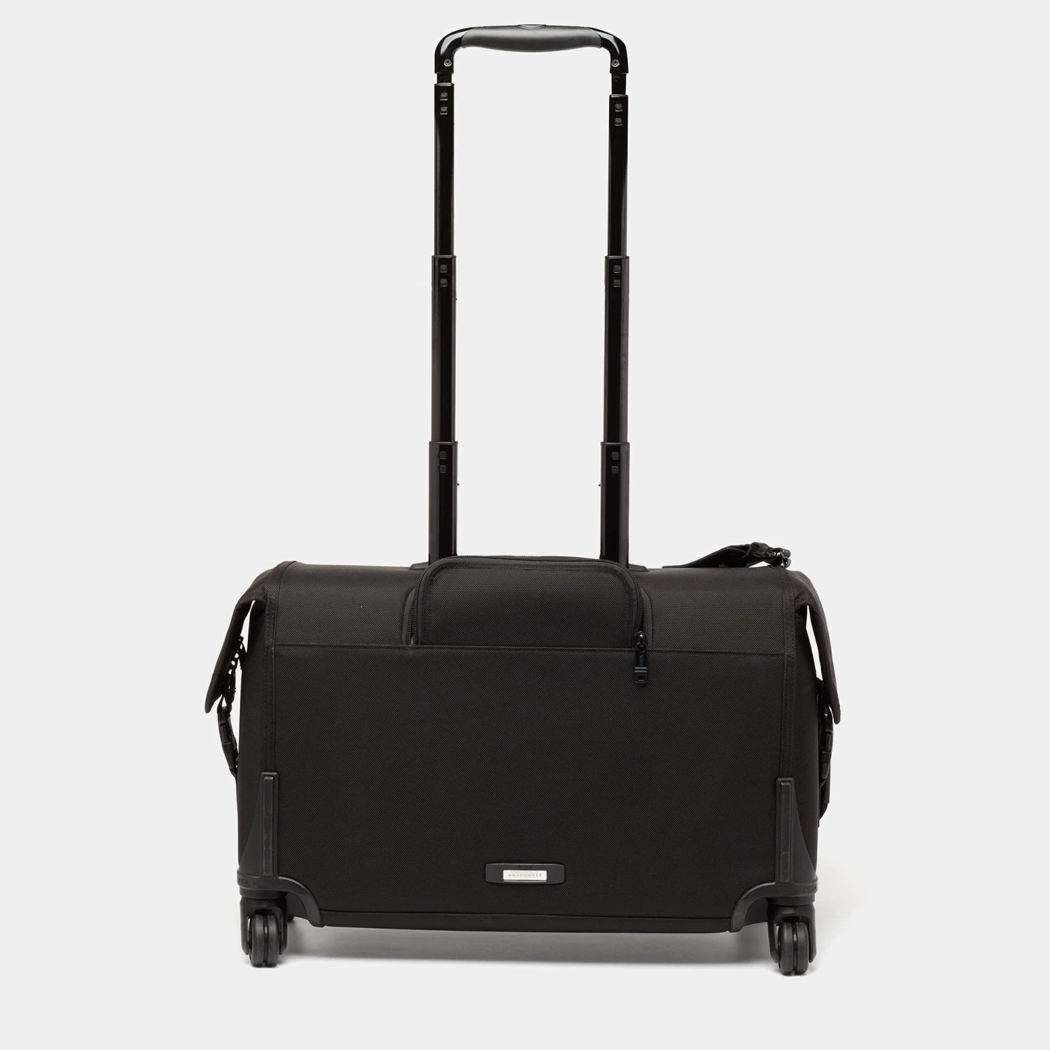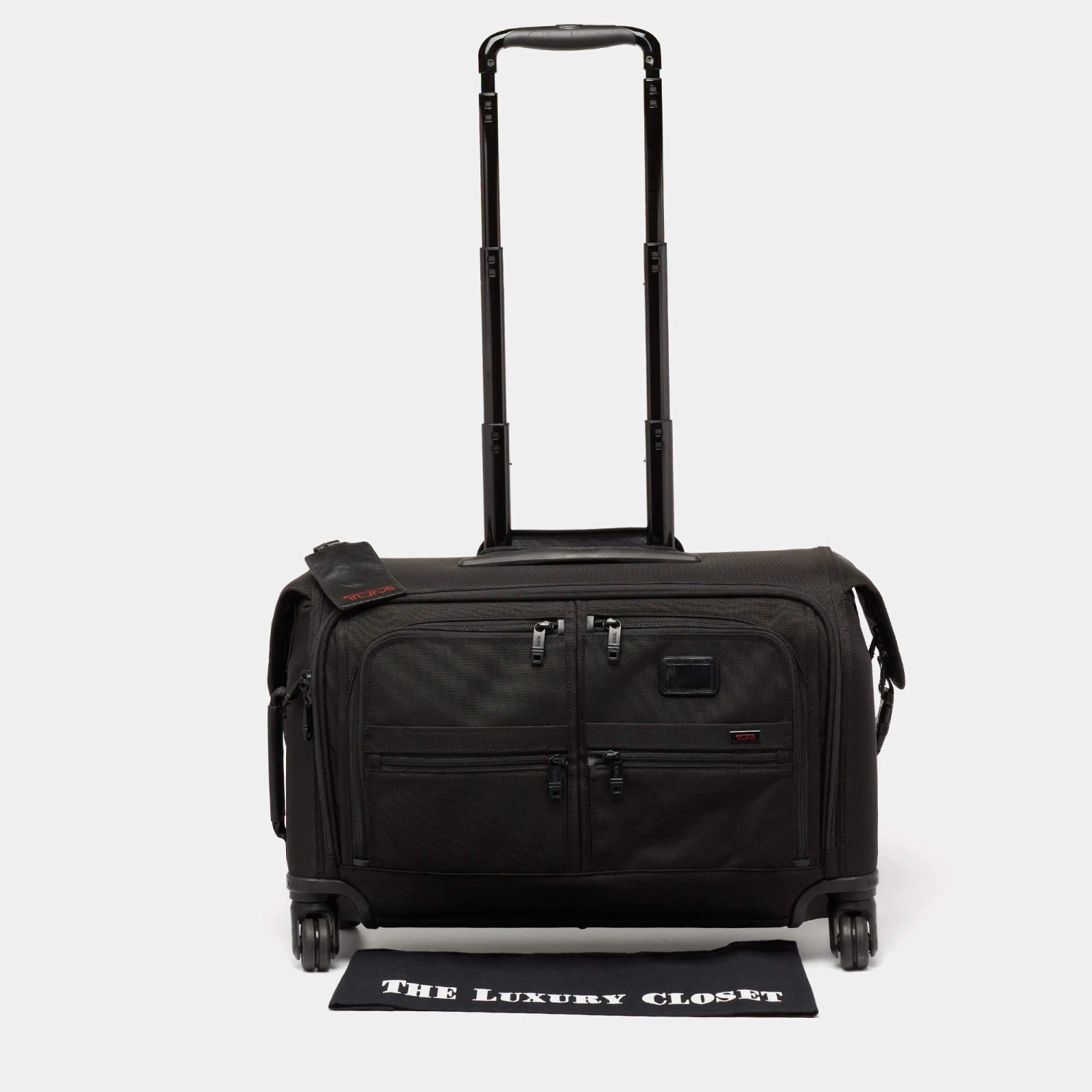 TUMI is a brand par excellence when it comes to travel accessories! Crafted from high-grade nylon and leather, the case features front zip pockets, a telescopic handle, a carry handle, and four wheels. The dual-zip closure opens to the main nylon interior furnished with several compartments.
