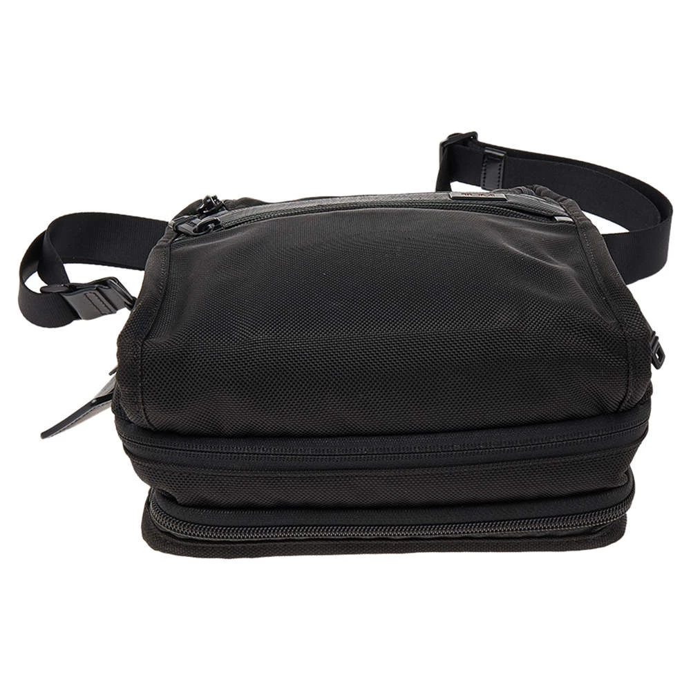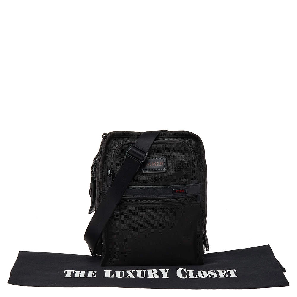 An accessory of practical style, this black bag from TUMI will be a delight to own. It is crafted from nylon and features a lined compartment and exterior pockets. Complete with a shoulder strap, you can carry this messenger bag on any day.