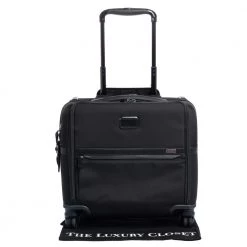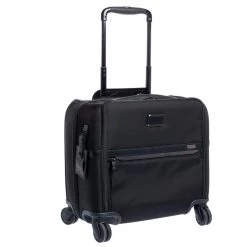 TUMI is a brand par excellence when it comes to travel accessories! Crafted from high-grade nylon and leather, the case features front zip pockets, a telescopic handle, carry handle and four wheels. The zip closure opens to a nylon interior furnished with several compartments.