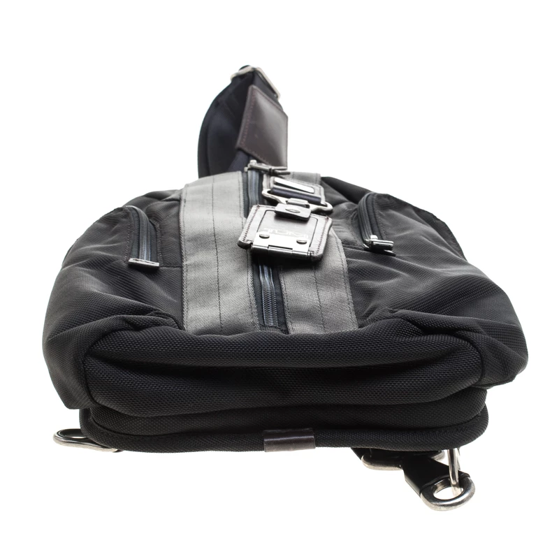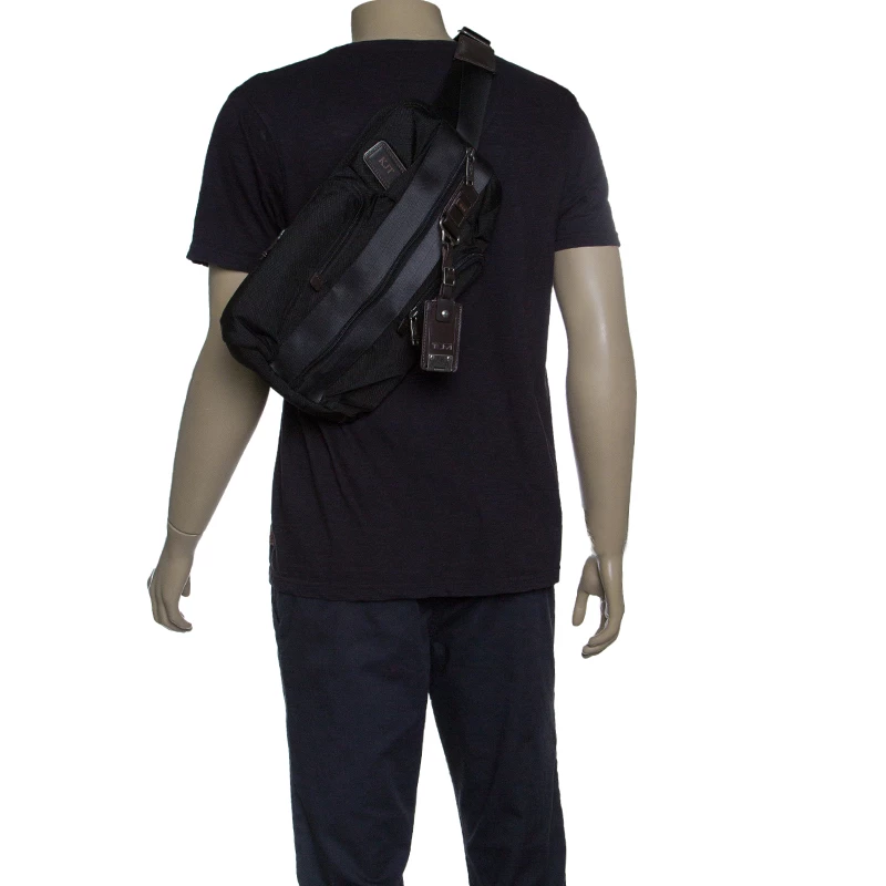 Wonderfully designed, this TUMI Alpha Bravo Monterey sling bag is crafted with black nylon with several exterior pockets placed quite interestingly. The exterior of the bag is further adorned with a detachable logo tag and an adjustable shoulder strap at the back. Its interior is lined with nylon and is designed to hold your basics most effortlessly.
