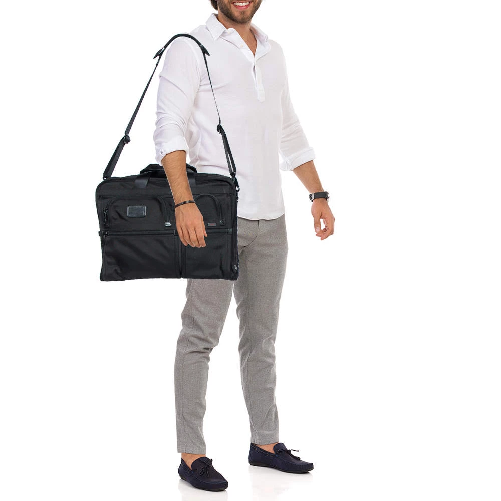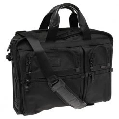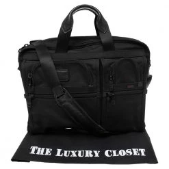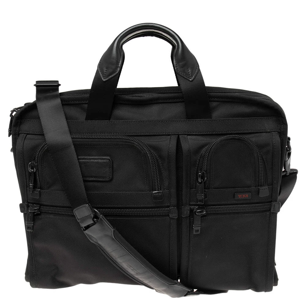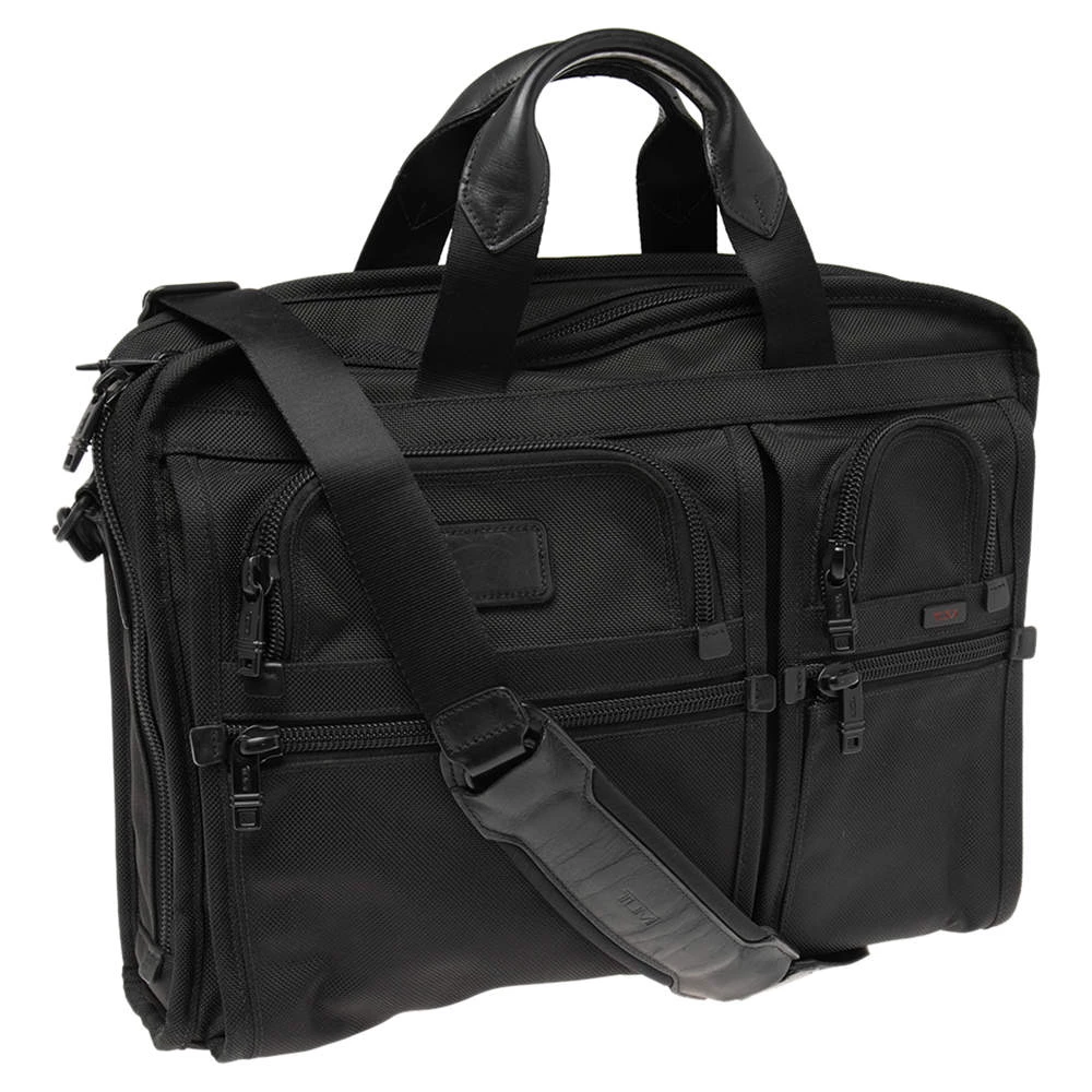 Employing high-grade materials and innovative construction to deliver impeccable products that aim at functional ease, TUMI is a brand travelers can trust. This Alpha Compact laptop briefcase is crafted in nylon and equipped with multiple pockets, a spacious compartment, and black-tone hardware. It is held by two handles and a strap.