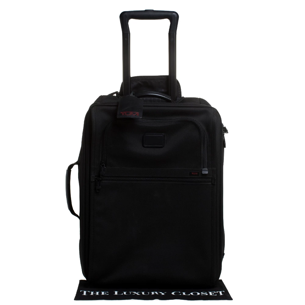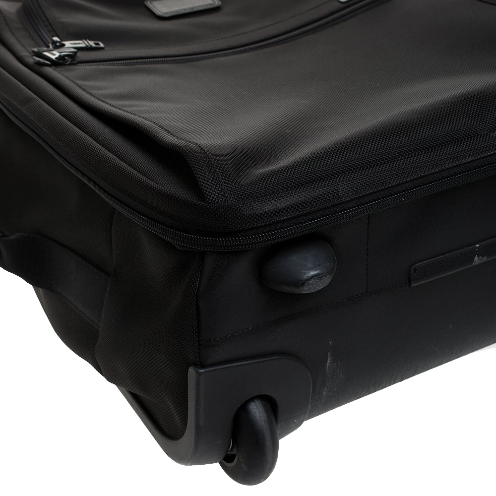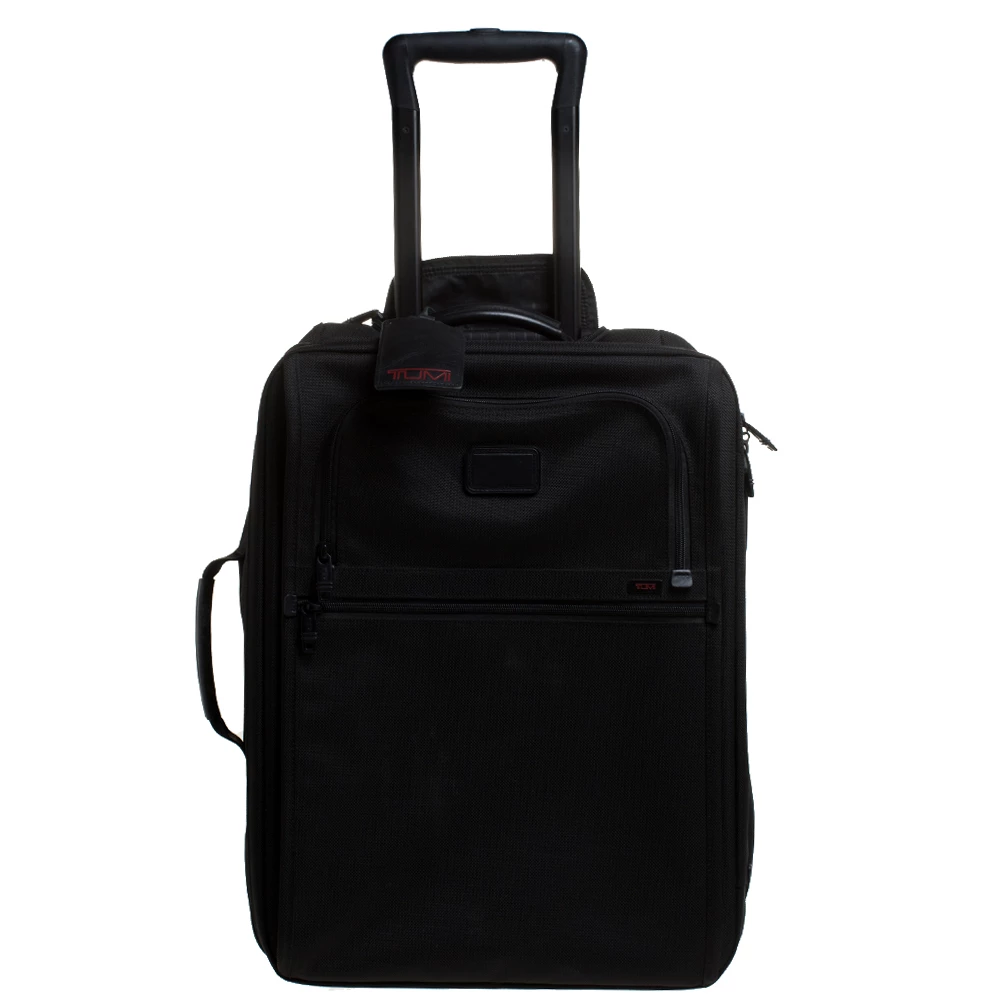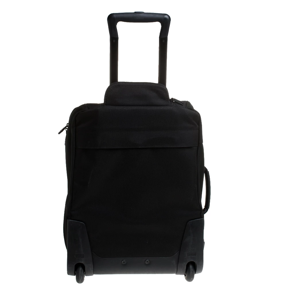 This Alpha II luggage bag is designed by Tumi in a black shade. This 2-wheeled carry-on features a big and one small zipper compartment with brand logo at the front. Crafted from nylon, this luxury opens to a wide nylon-lined interior with spacious pockets that ensure to house your clothes, footwear and other essentials. Offering great look and durability, this will be your companion on all your trips.