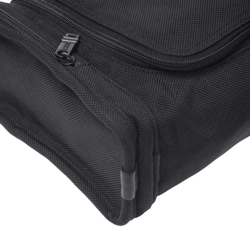 For the men on the go, this Alpha II clutch from TUMI is ideal when travelling. It is crafted with nylon and comes in a classic shade of black. It has two exterior pockets on the sides and the front zipper opens to a nylon-lined spacious interior that can hold more than your basics. It is complete with black-tone hardware.