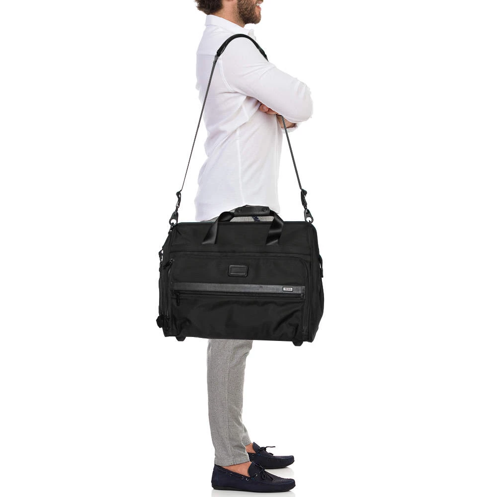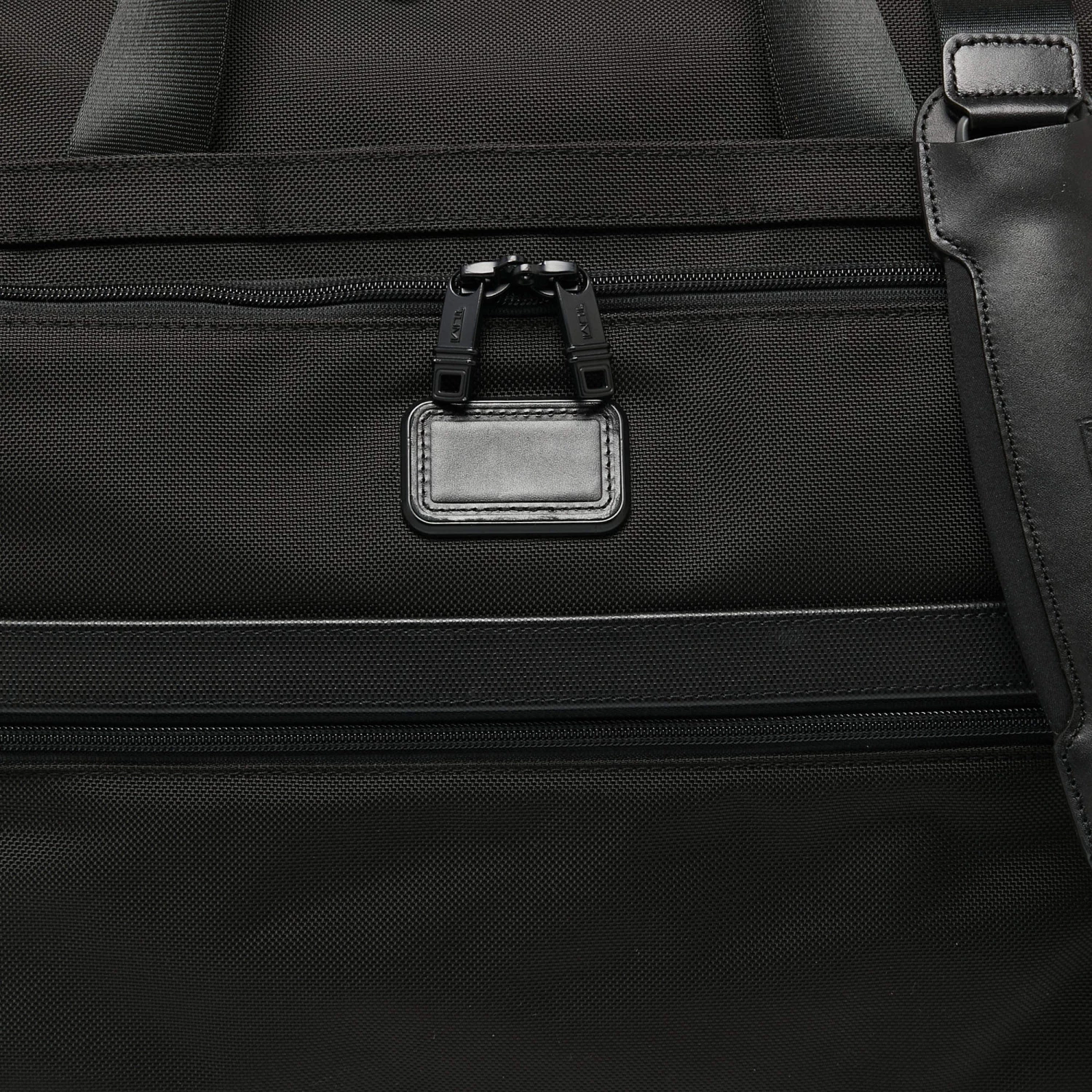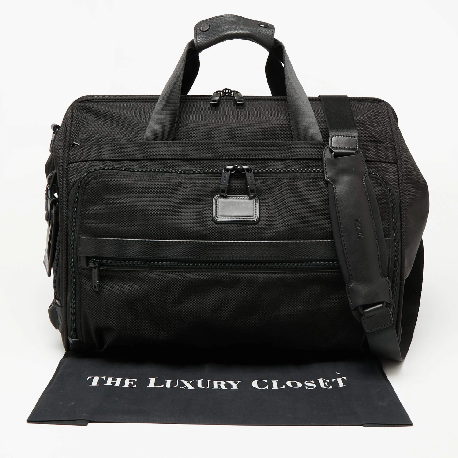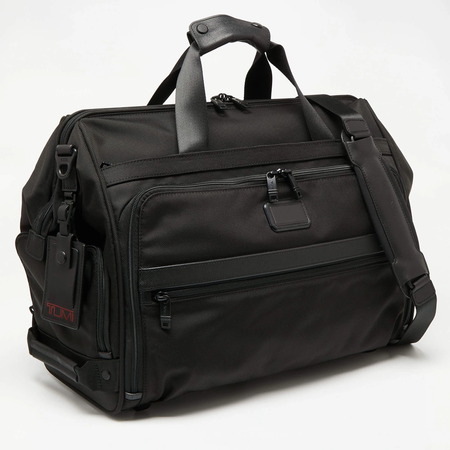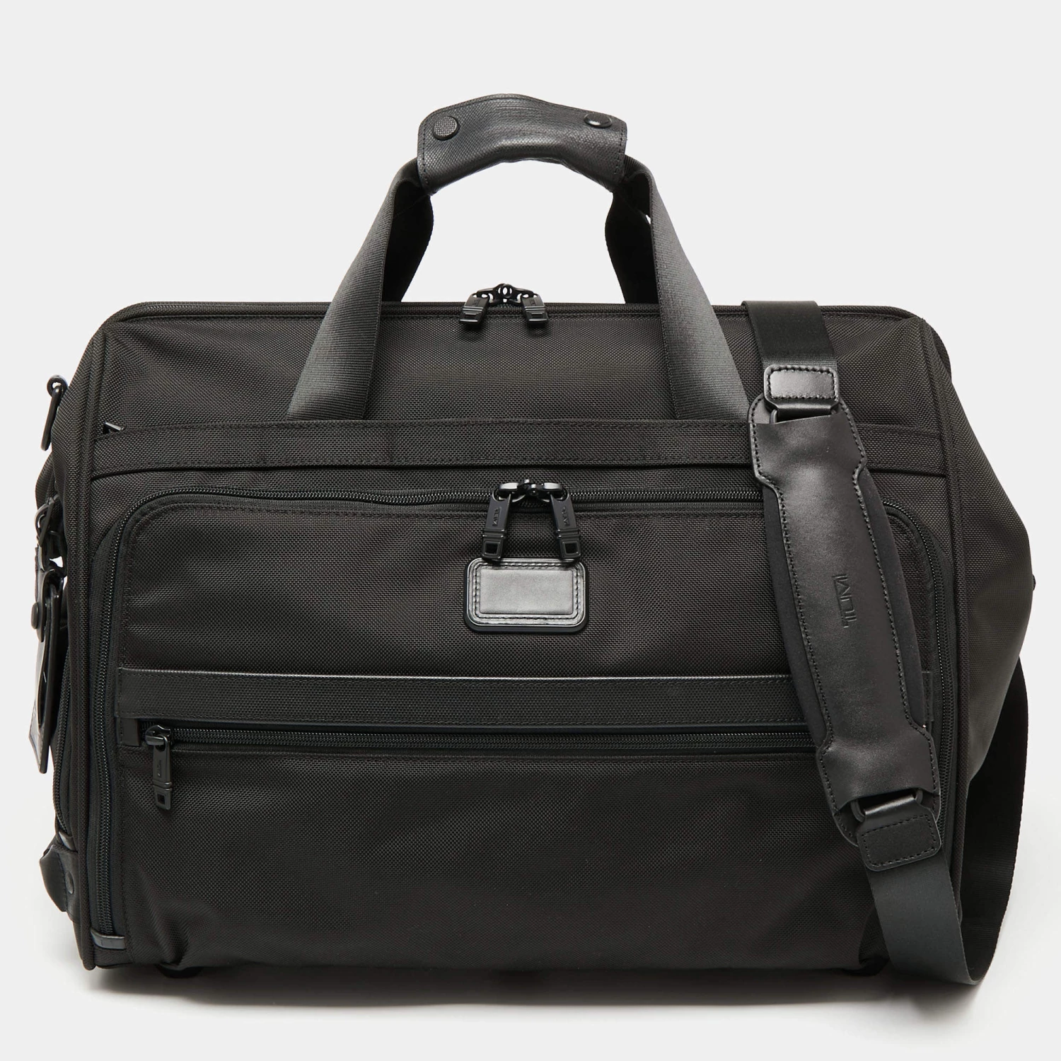 This Alpha II Weekender bag from TUMI is designed to conveniently assist you. Crafted using nylon, it features two top handles, a removable shoulder strap, and a smart black shade. This creation is a worthy buy.