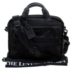 Crafted from nylon, this travel bag is from TUMI. The convenient bag comes with two top handles, a shoulder strap and zipped compartments at the front. The main compartment is a spacious one lined with nylon and sized to keep your essentials organized. This is definitely one handy travel bag that deserves to be yours.