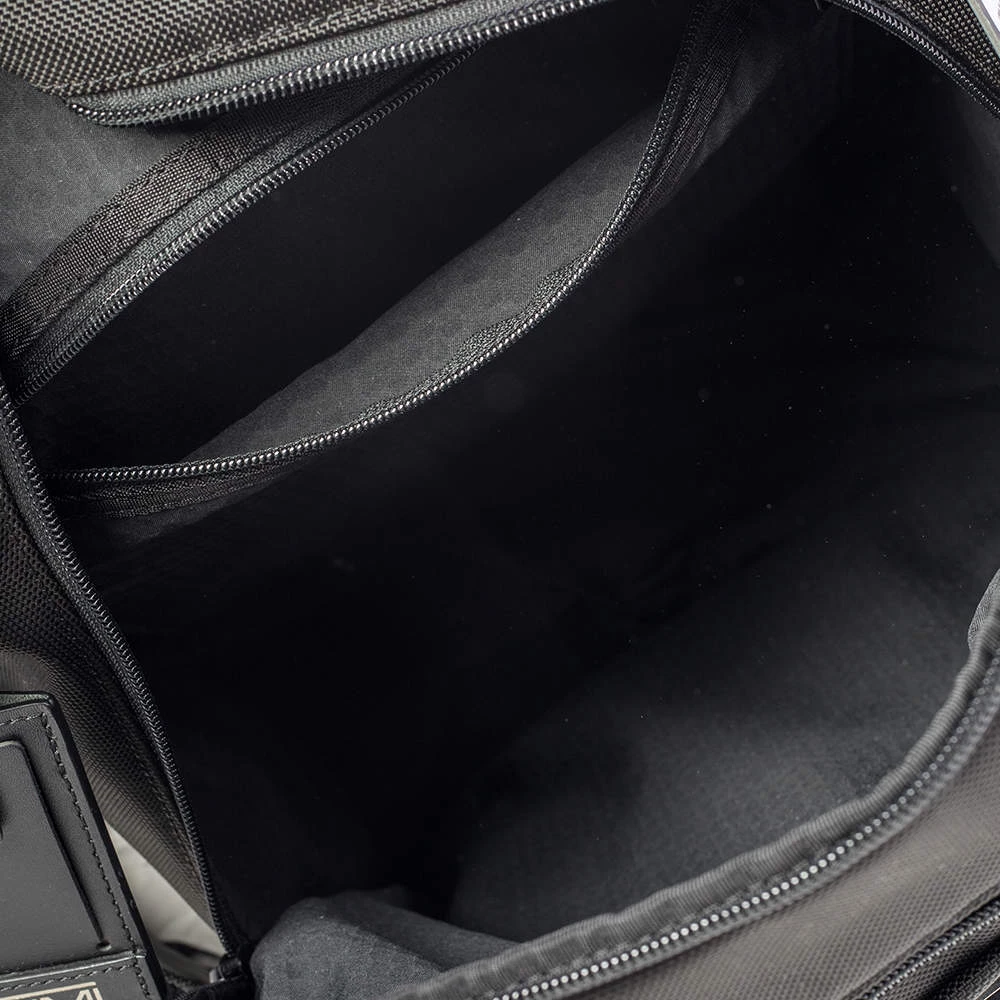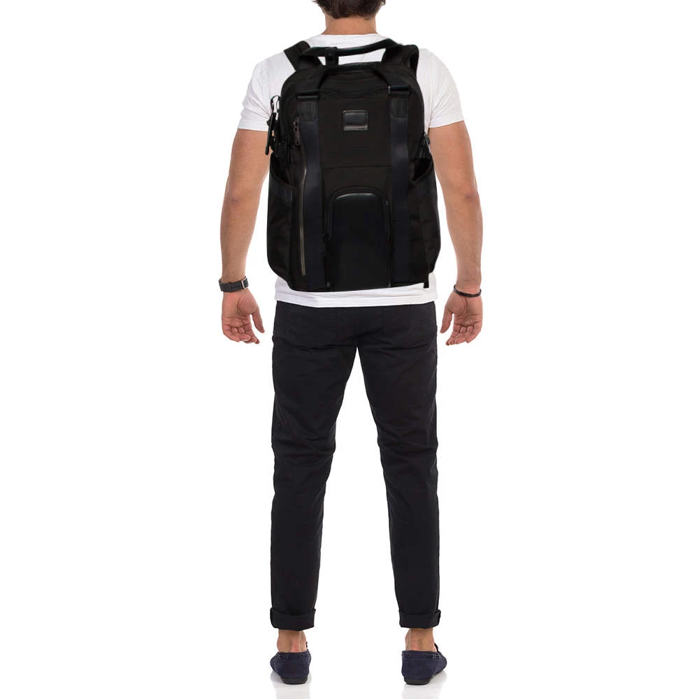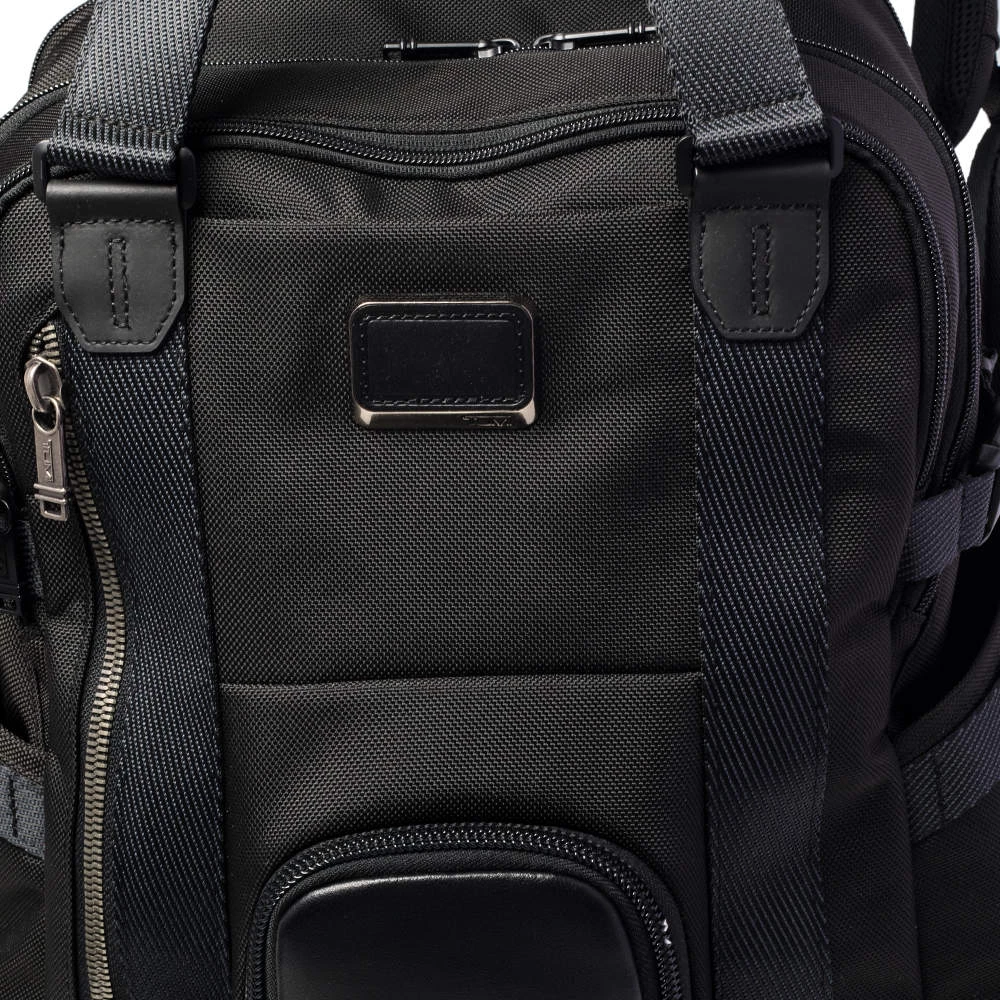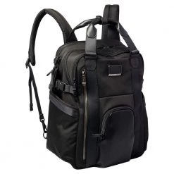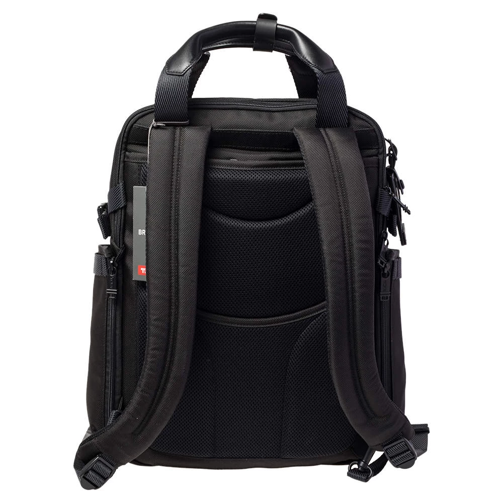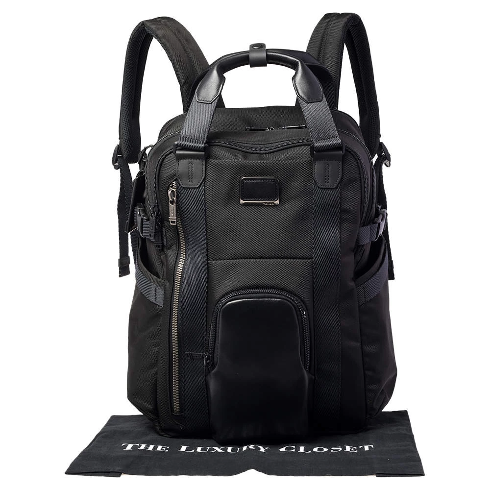 This durable and reliable Alpha Bravo Kings backpack tote by TUMI is made from nylon and leather into a functional design. The bag features zip pockets on the exterior, buckled straps, and a spacious main interior. It is complete with two top handles and adjustable shoulder straps.