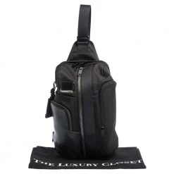 This stylish sling bag by Tumi is great for travelling. Crafted from quality and durable nylon, it comes in a classic shade of black. It is styled with leather trims, a zip closure that leads to a nylon interior that has enough space for all your essentials. It is finished with zip pockets on the exterior and silver-tone hardware.
