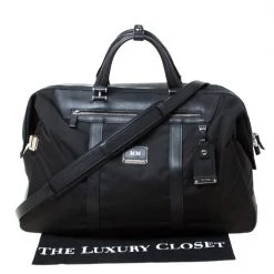 For the men on the go, this Anderson duffle bag from TUMI is ideal when travelling. It is crafted with black nylon and trimmed with matching leather. It features dual top handles and a detachable shoulder strap along with a zipper pocket to the front. The top zipper opens to a nylon-lined spacious interior that can hold more than your basics. It is complete with silver-tone hardware.