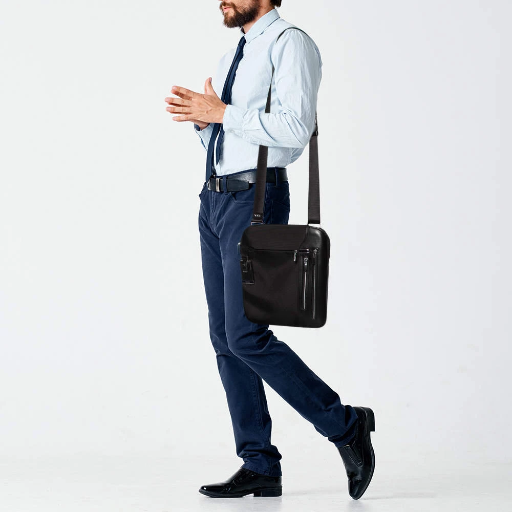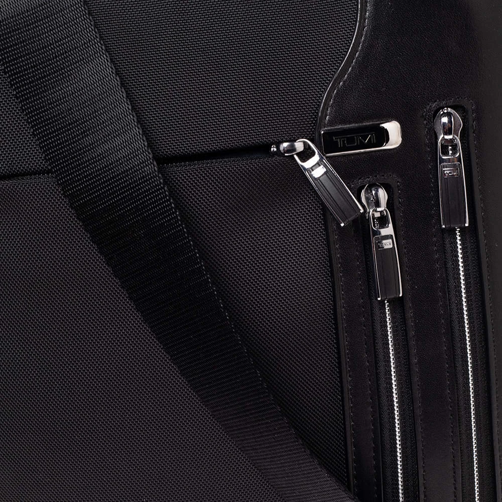 An accessory of quality and value, this black bag from TUMI will ensure your essentials are carried with ease. It is crafted from nylon as we as leather and features a nylon compartment and exterior pockets. Complete with a shoulder strap, you can add this messenger bag to your work or casual edit.