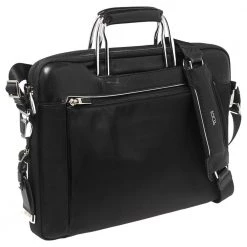 Employing high-grade materials and innovative construction to deliver impeccable products that aim at functional ease, TUMI is a brand everyone can trust. This briefcase is crafted in ballistic nylon as well as leather and equipped with lined compartments and silver-tone hardware. It is held by two handles and a shoulder strap.