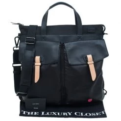 Tumi is a brand well known for its overwhelmingly original designs and class. This Santa Monica Whitfield Helmet tote has been designed in black nylon and leather and features two external pockets, a detachable shoulder strap and top handles. The top zipped closure opens to a nylon interior housing one zipped pocket and one patch pocket.