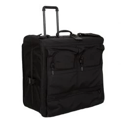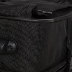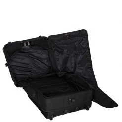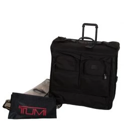 Crafted from nylon and leather trims, this luggage bag from Tumi is the perfect travel bag for your journeys. With a unique trifold design, the bag comes with an ample number of zip pockets to neatly organise your things. Featuring a buckle fastening closure, the bag opens to a well organised set of compartments comprising of a coat blazer cover and enough room to organise your clothes and accessories. The interior is lined with nylon. The suitcase is complete with a set of wheels, protective feet and a trolley handle.
