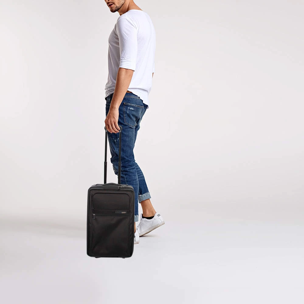 Employing high-grade materials and innovative construction to deliver impeccable products that aim at functional ease, TUMI is the brand travelers vouch for. This lightweight luggage case is crafted using nylon and equipped with exterior pockets, a spacious compartment, a telescopic handle, and 2 wheels.
