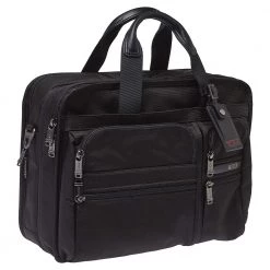 Employing high-grade materials and innovative construction to deliver impeccable products that aim at functional ease, TUMI is the brand travelers can trust. This expandable laptop briefcase is crafted in nylon and equipped with multiple pockets, spacious compartments, TUMI tag, and black-tone hardware. It is held by two handles and a shoulder strap.