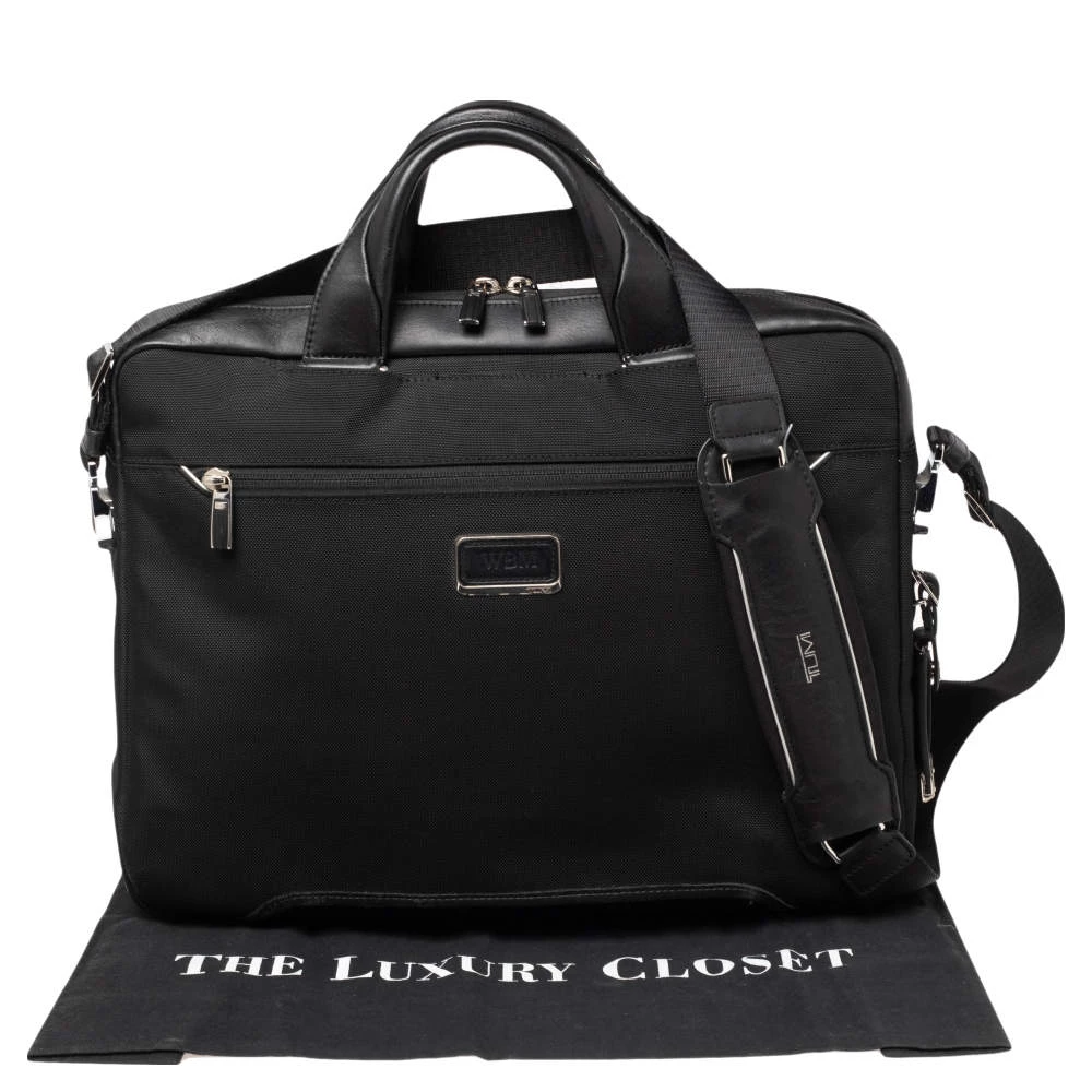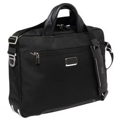 Employing high-grade materials and innovative construction to deliver impeccable products that aim at functional ease, TUMI is the brand travelers can trust. This TUMI laptop bag is crafted using nylon and equipped with exterior pockets and a lined compartment. It is held by two handles and a shoulder strap.