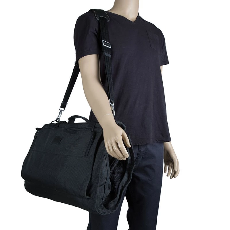 Trifold design opens to lay flat and comes with a lot of pockets to help you organise your stuff neatly. It folds up compactly to a sleek travel bag which comes with a short top handle and a shoulder strap with a convenient shoulder strap.