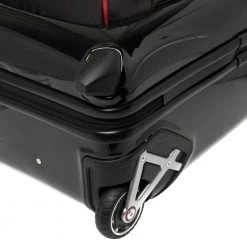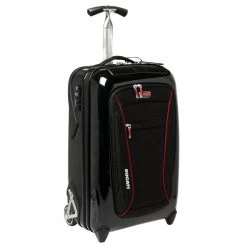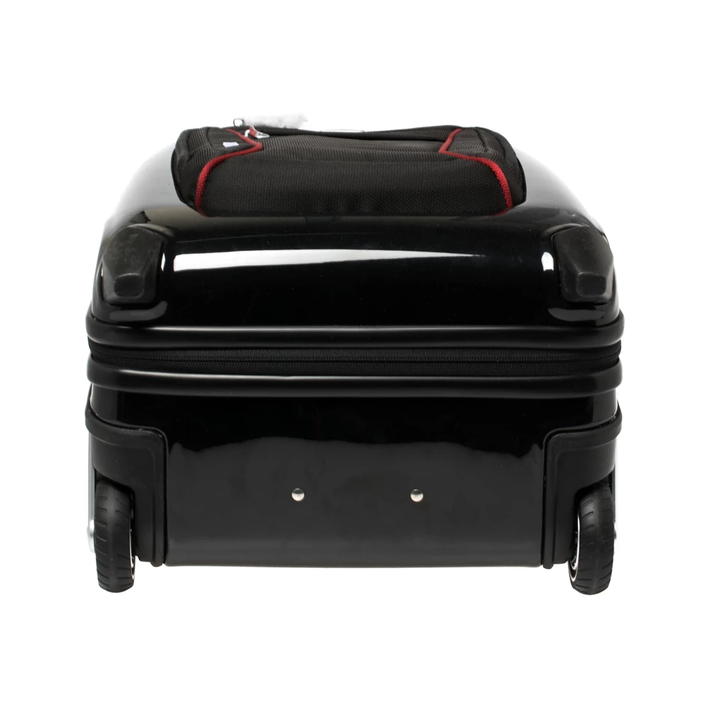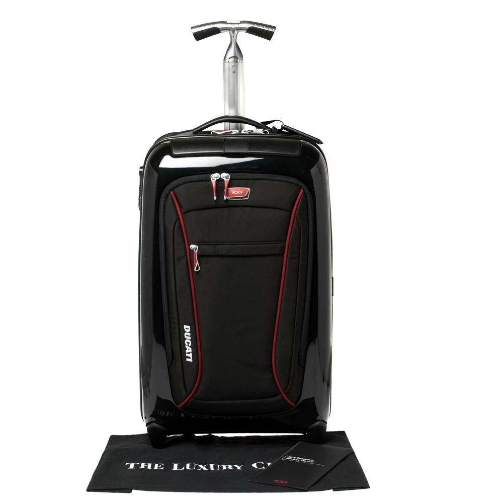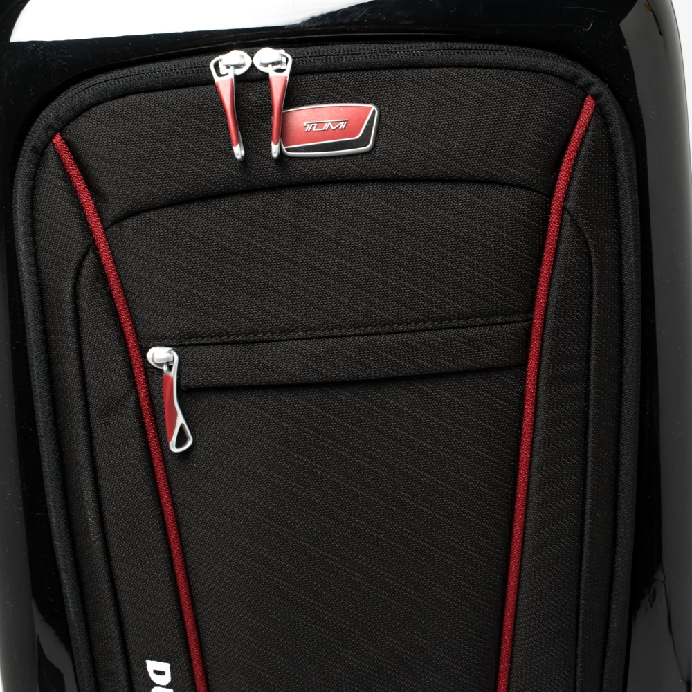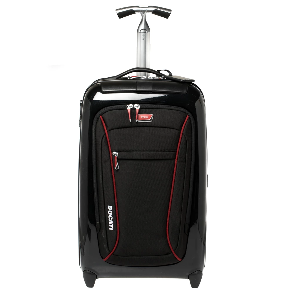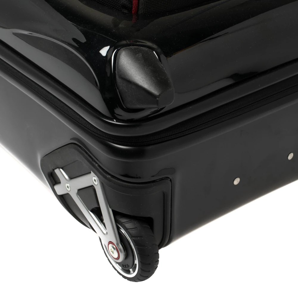 This Ducati Evoluzione International luggage bag is designed by TUMI in a black-red combination. This two-wheeled luggage hardcase features a nylon panel at the front detailed with zipped compartments and the brand label. Crafted from black polycarbonate, this luxury bag opens to a wide interior with spacious pockets that ensure to house your clothes, footwear, and other essentials. Offering a great look and durability, this will be your companion on all your trips.