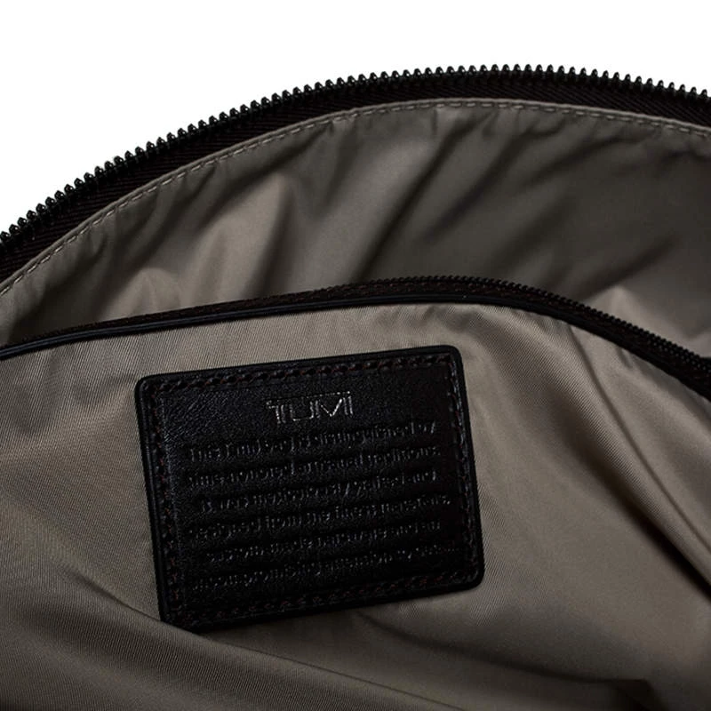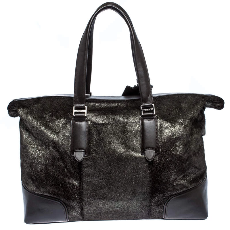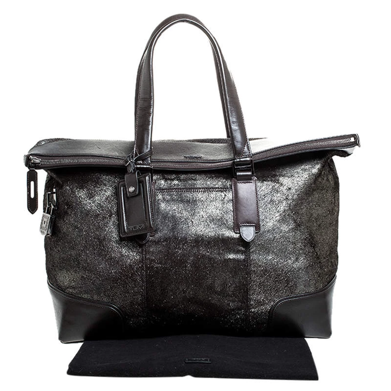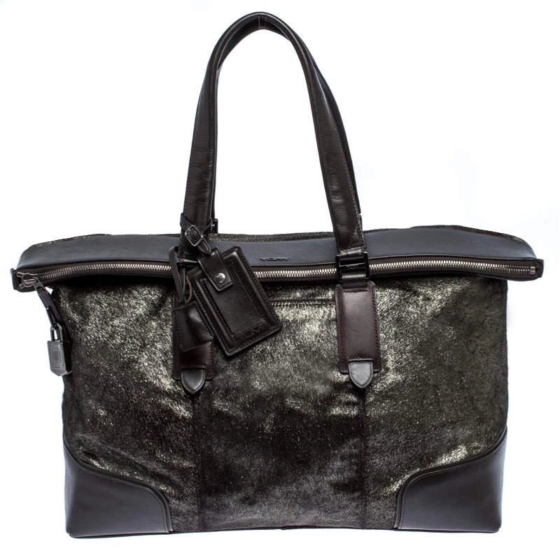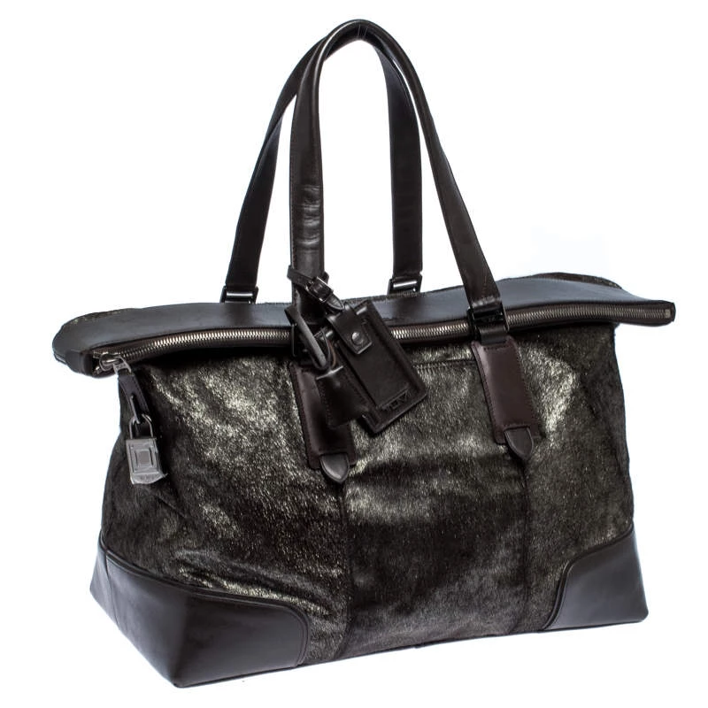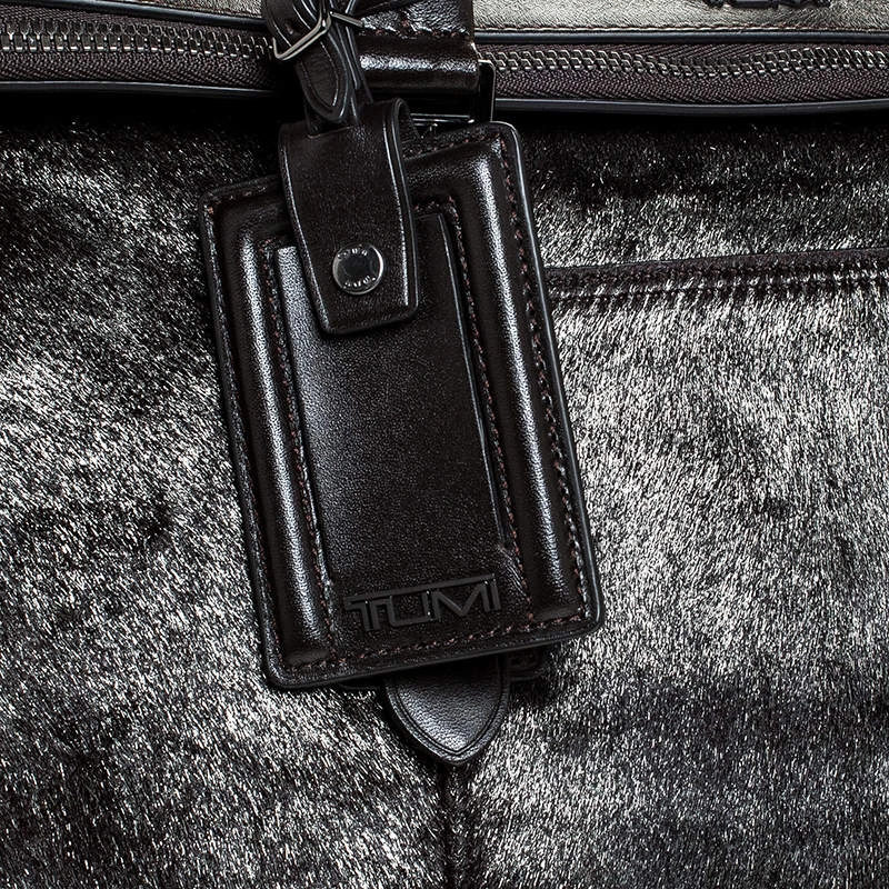 The beauty of this TUMI Weekender bag lies in its simple design and seamless construction. The bag is crafted from shimmering calf hair as well as leather and features a folded top. Two handles on top and a spacious satin interior add to the utility of the bag. The Stamford is well-sized and ideal to take along on your travels.