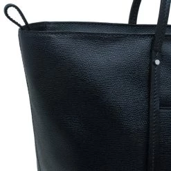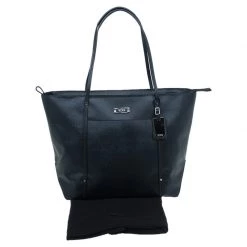 This tote by Tumi is admired for its sophisticated elegance. Crafted from textured leather in black, the Villa Quintessential tote is provided with silver-tone hardware. It features a metallic logo plate, front pocket, an exterior slip pocket, and two sleek flat handles. The zip closure is accented with a leather pull. Its interior houses a zip pocket and slip pockets.