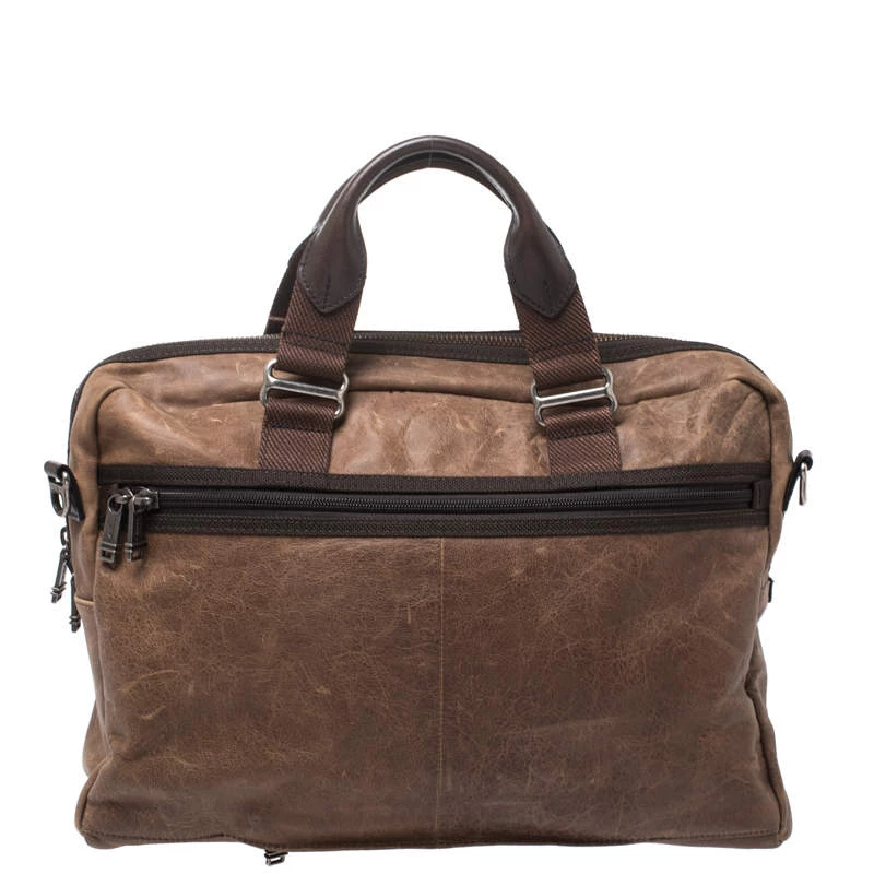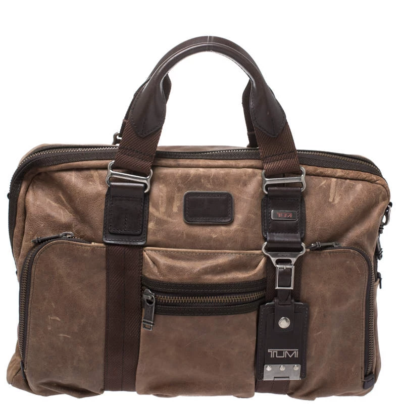 The Alpha Bravo design from Tumi is truly the alpha of all bags! Crafted with brown leather, the McNair slim briefcase is perfect for organising. It includes a separate laptop compartment and has adjustable shoulder straps. Aside from the multiple exterior pockets, the interior is fabric lined and houses multiple organizational pockets.