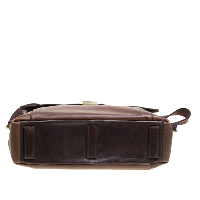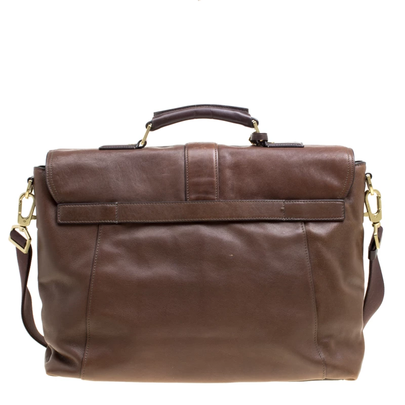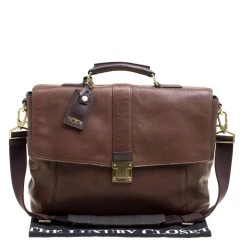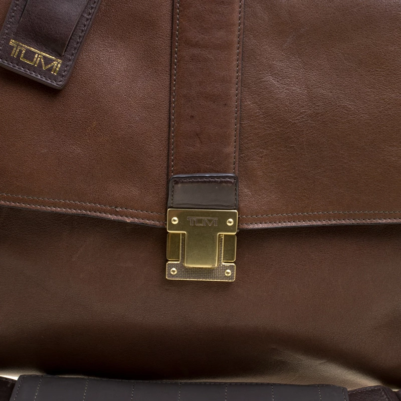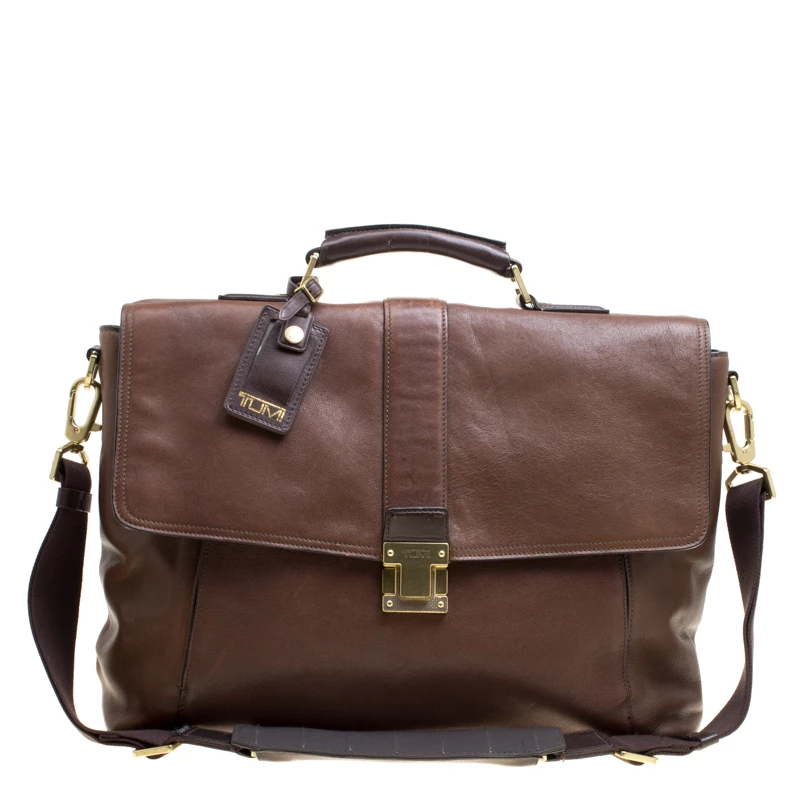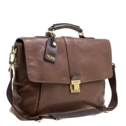 Over the years, TUMI has risen as a brand that all luxury lovers can trust for their designs are made with high attention to quality and craftsmanship. This briefcase is a great example. It has been crafted from brown leather and designed with a top handle and a flap to secure the well-sized fabric interior. This bag is truly durable and stylish.