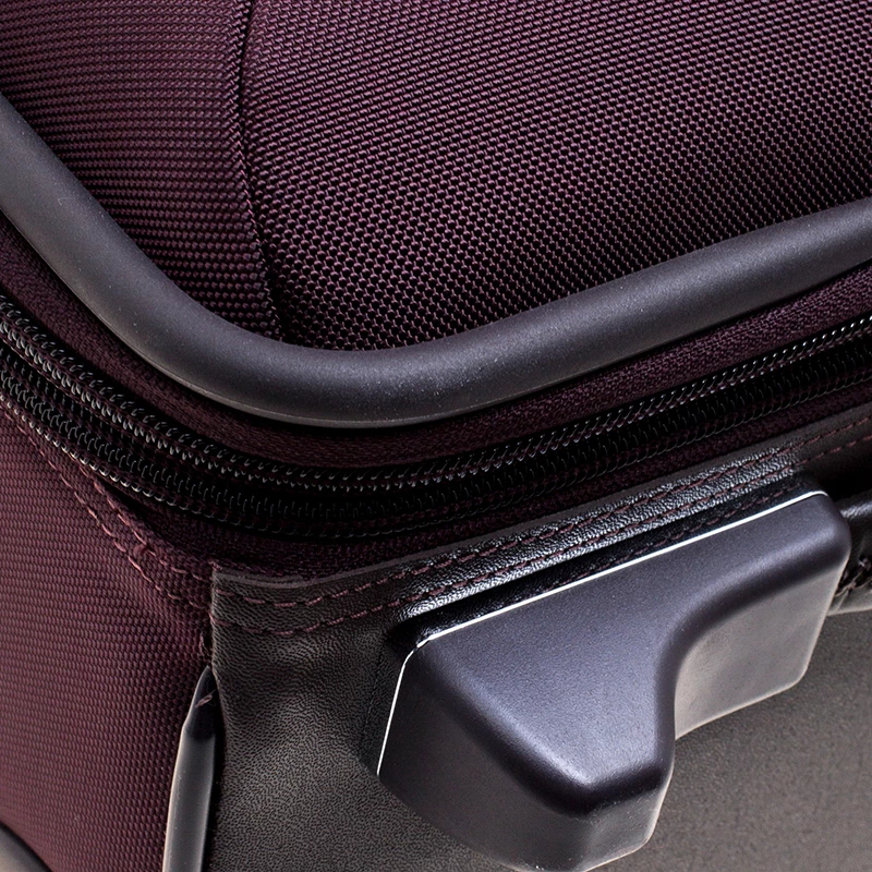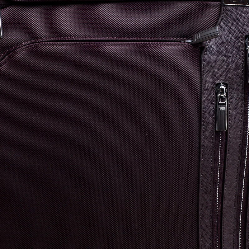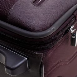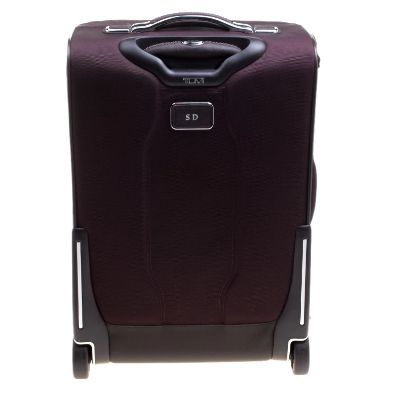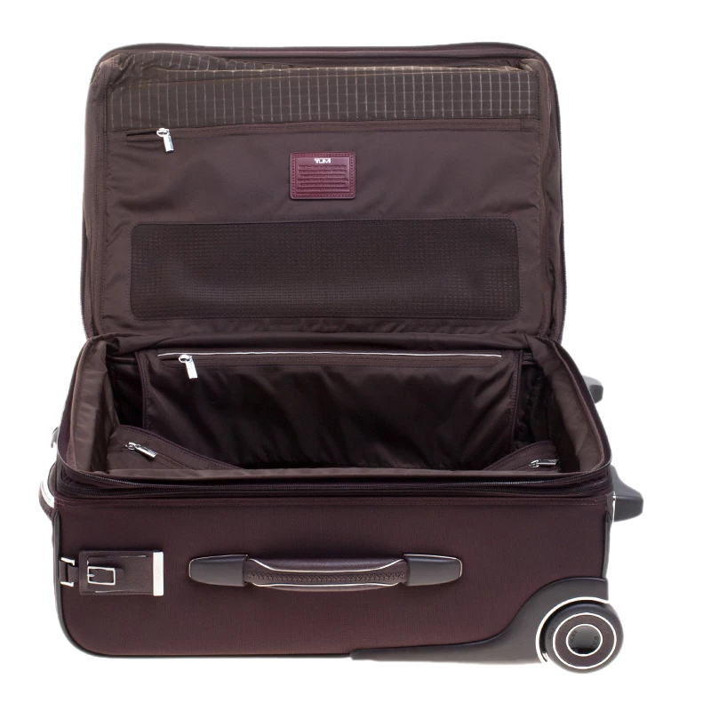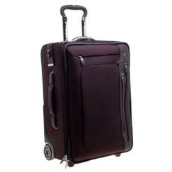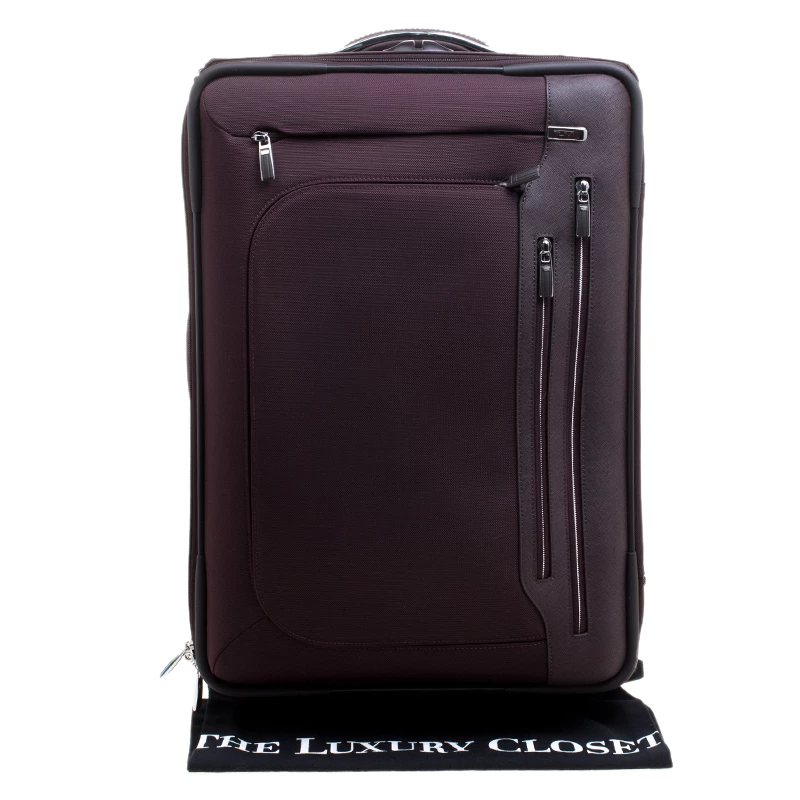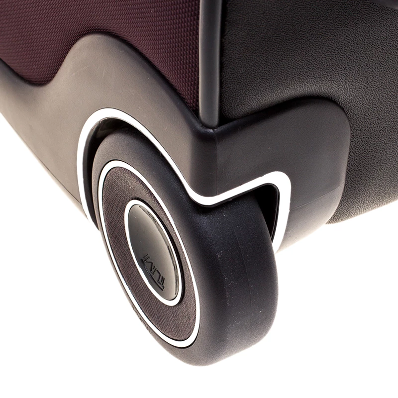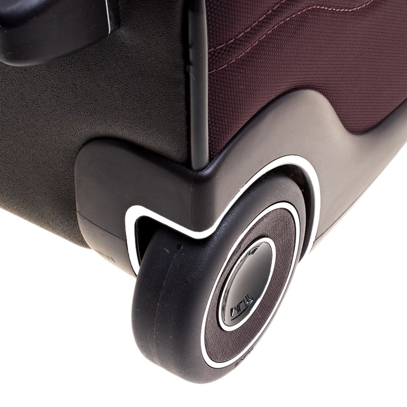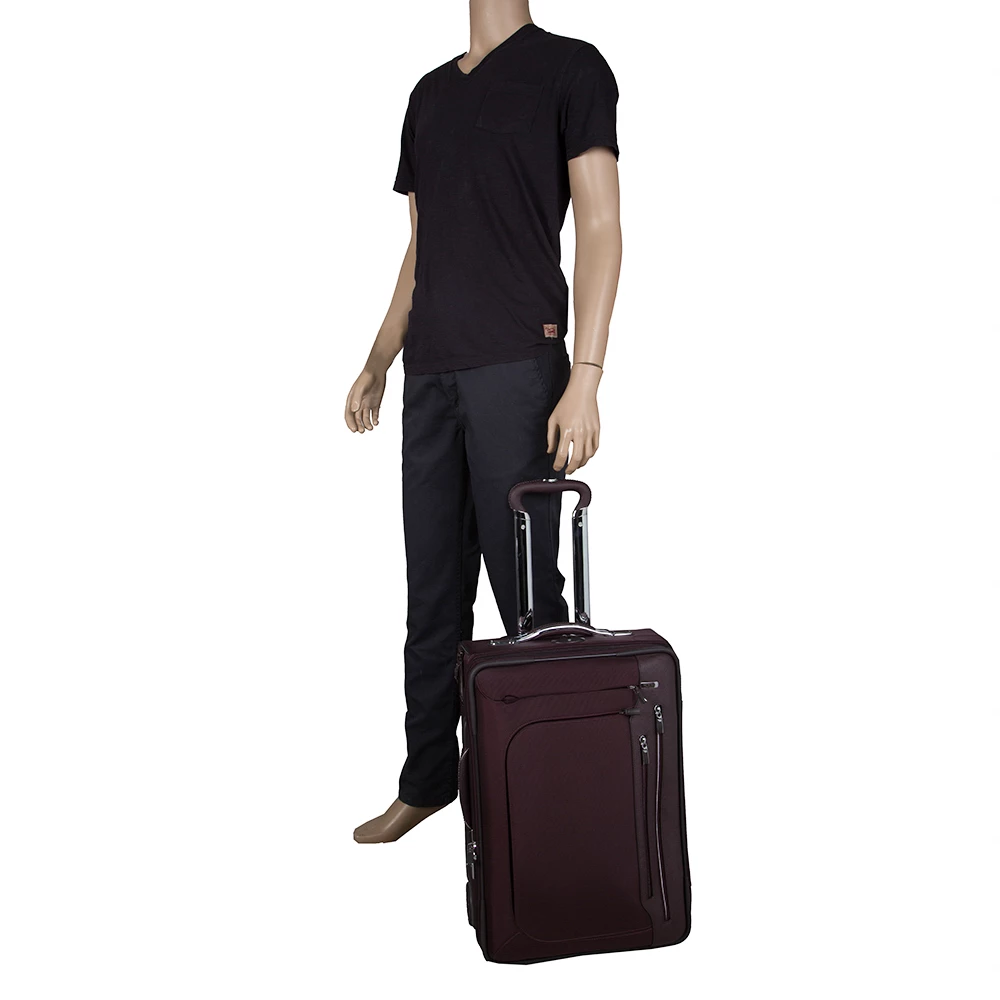 Look fashionably ready and equipped with your in flight essentials with this Tumi Carry-On luggage. Crafted in burgundy nylon fabric, this Arrive De Gaulle International piece is accented with black leather details. With three zippered pockets at the front, this 2 wheeled trolley opens to a main compartment and multiple small compartments to keep you organised.