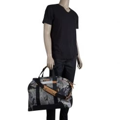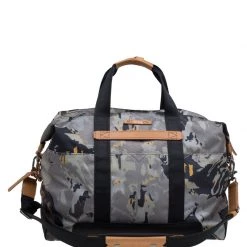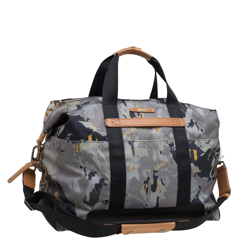 Tumi ‘Dalston Stannard’ small duffel bag with its camouflage canvas simplifies overnight and weekend travel. It has a slip pocket and leather newspaper holder at front, slip pocket and snap-button webbing strap at back, flat top handles with leather keeper and a detachable, adjustable flat cross-body strap with detachable padded leather shoulder rest.