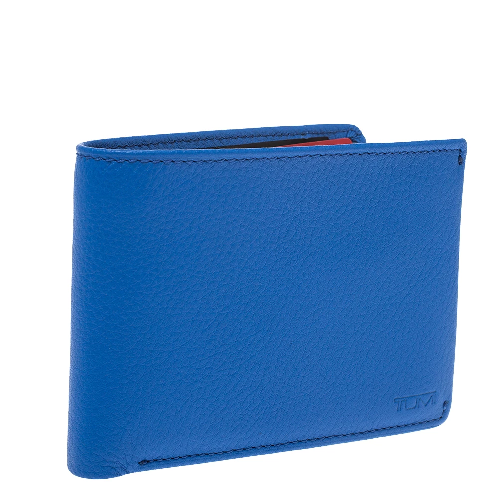 This Tumi wallet is crafted with quality leather and comes in a lovely shade of blue. Super functional, it comes with multiple card slots and pockets. A blend of class and functionality, this wallet with its compact size slips easily into your pocket.