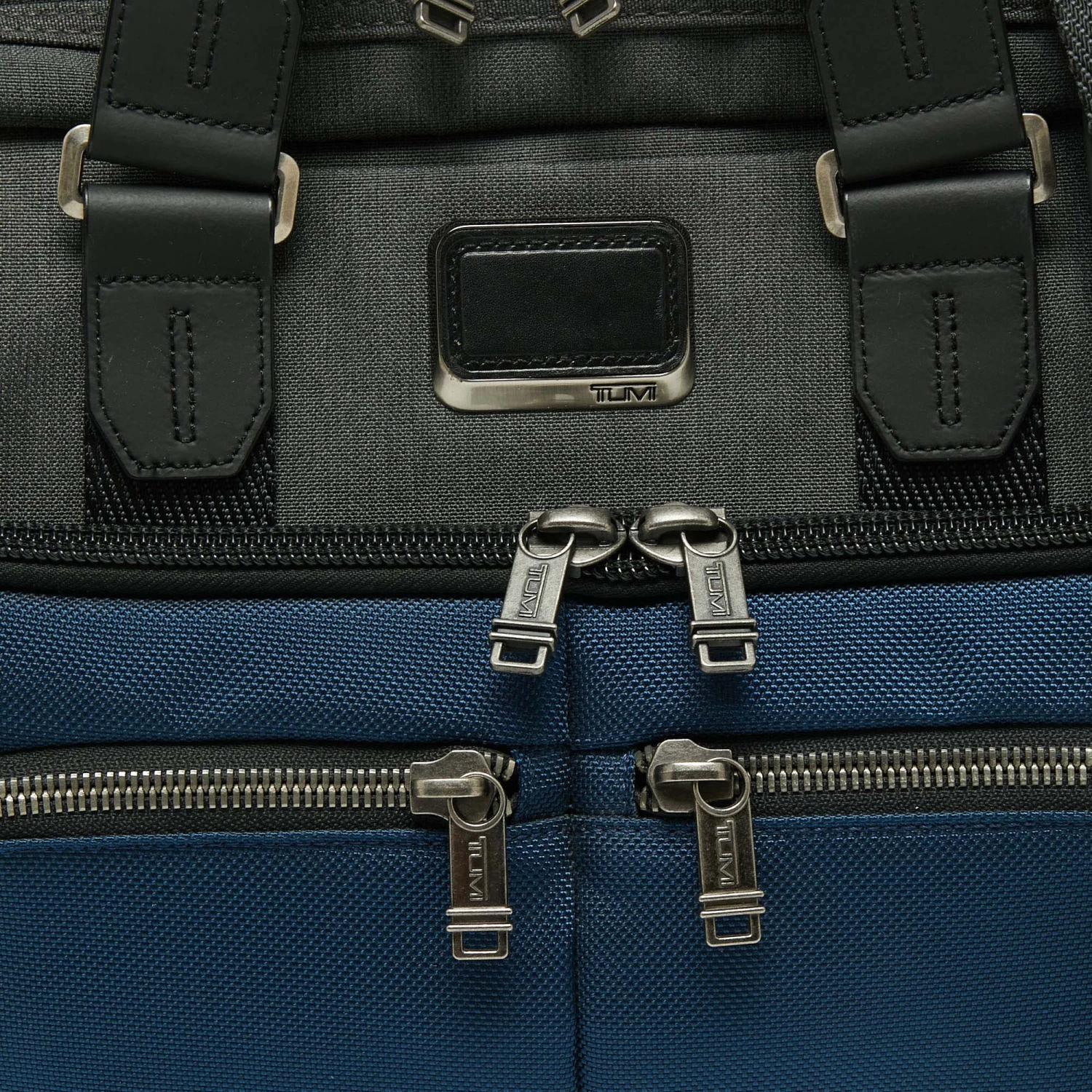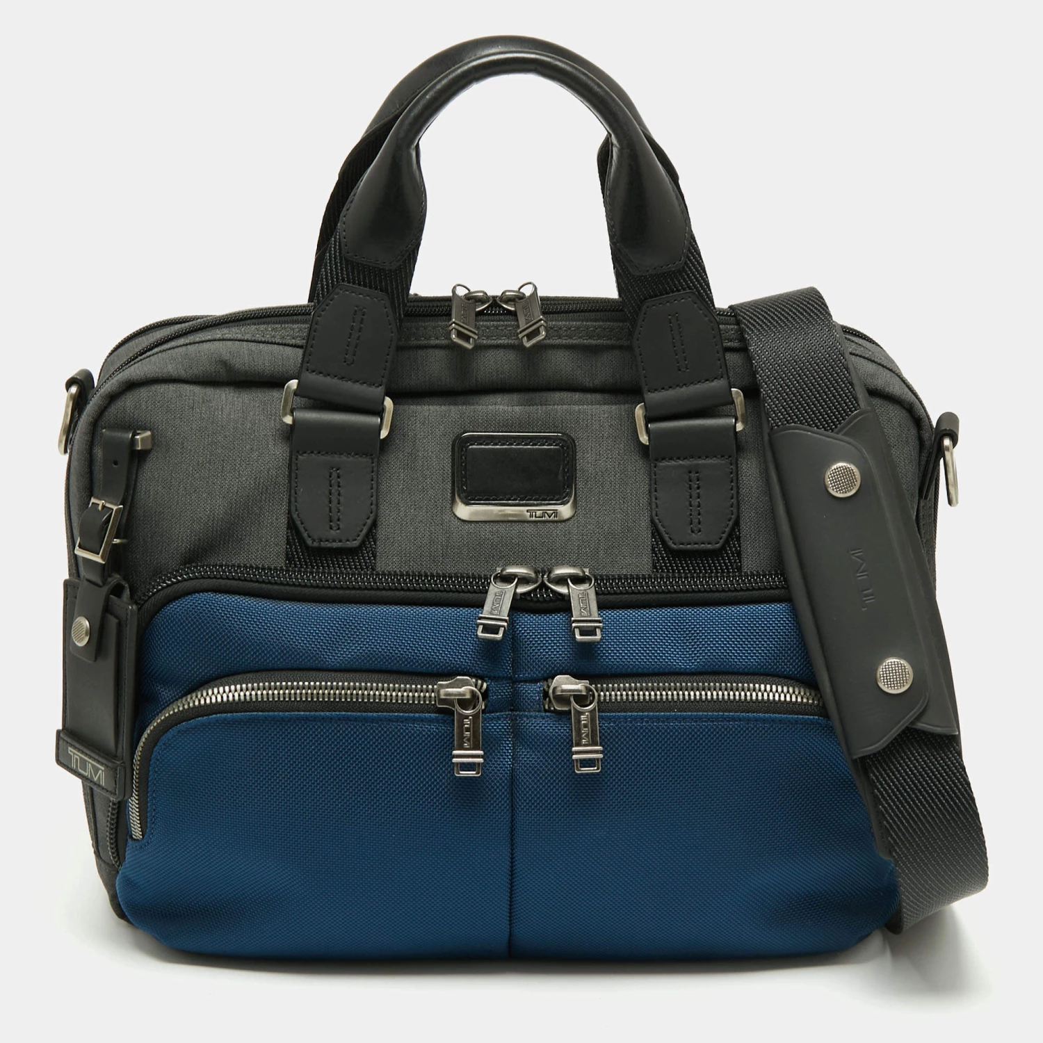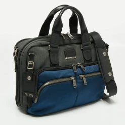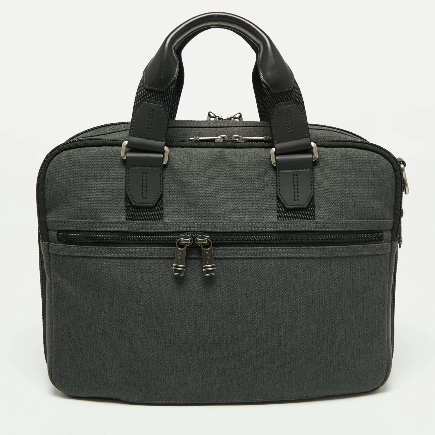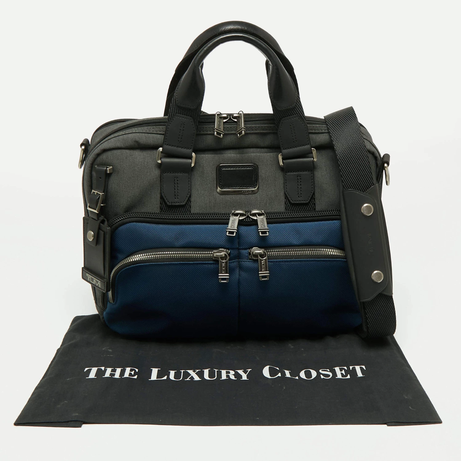 From the House of TUMI comes this briefcase that will prove to be highly functional and useful to you. It is made from grey-blue nylon and comes with two top handles. It showcases silver-tone hardware and a fabric-leather interior. Keep your personal items safe in this briefcase.