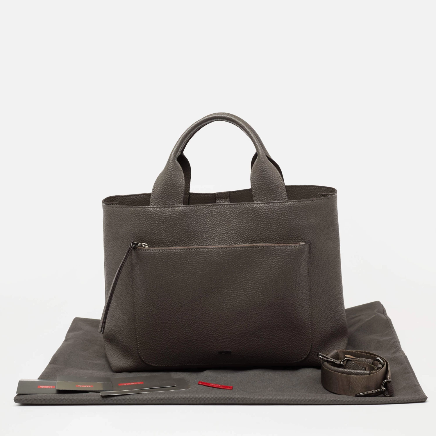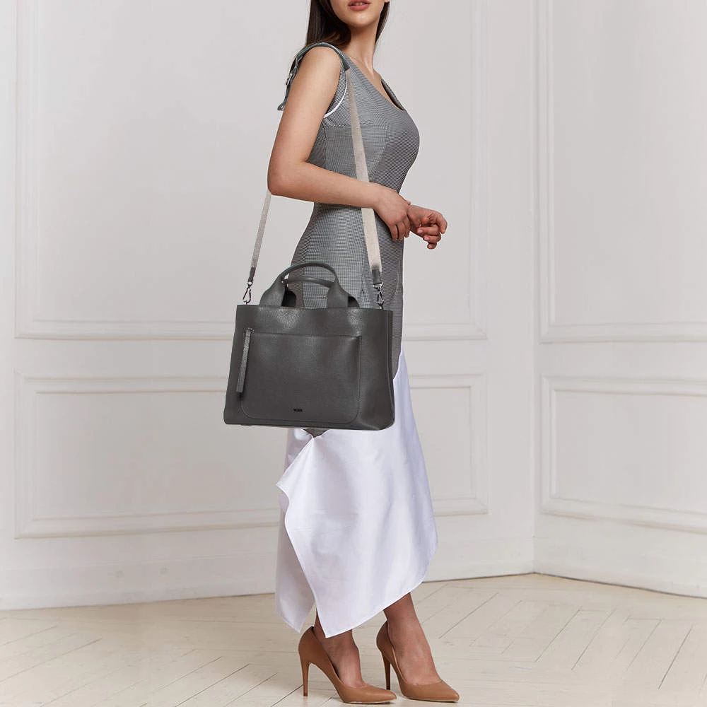 The spacious nylon and leather interior make this TUMI Satya satchel an ideal everyday accessory. Created from leather, it features dual handles at the top, a front zipper pocket and black-tone hardware.
