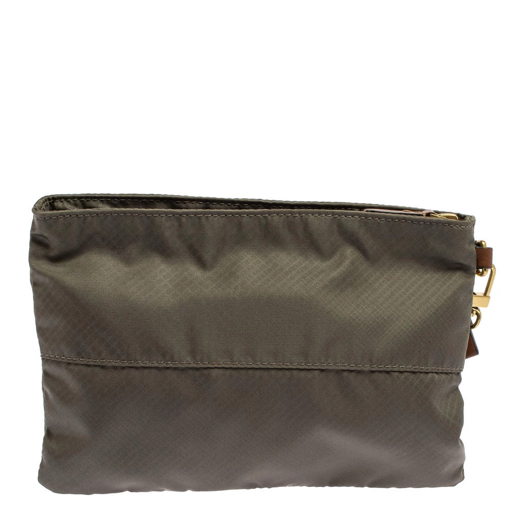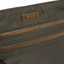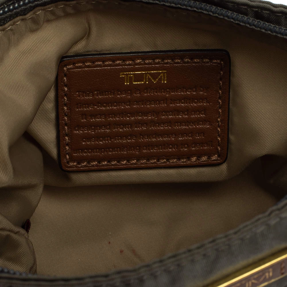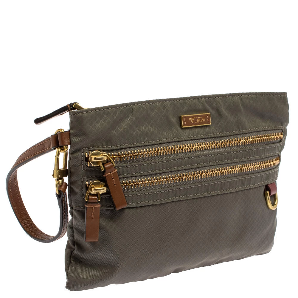 A compact and practical option to store your handy essentials, this TUMI nylon pouch will be a useful accessory. It has front zip pockets, the brand logo on the front, and a main nylon-lined compartment. The pouch is complete with a leather wristlet.