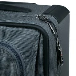 Designed for the international business traveler, this Tumi elevates your travel experience with the pinnacle of design innovation, engineering, functionality, and performance. It features a top handle, removable and adjustable shoulder strap with exterior zip pockets and two wheels for carrying it comfortably . The roomy interior is lined with nylon and has Interior pockets. It comes with a full-size garment bag inside the suitcase with a hanging hook