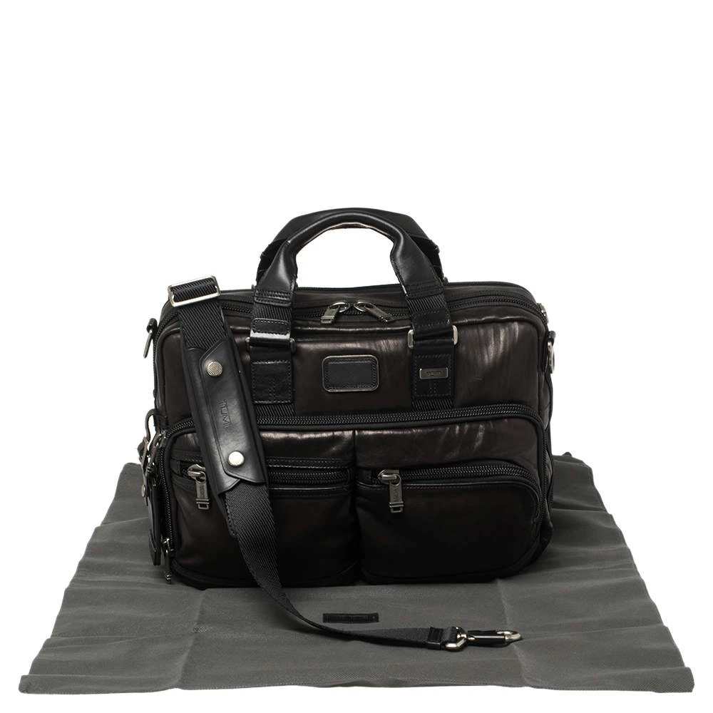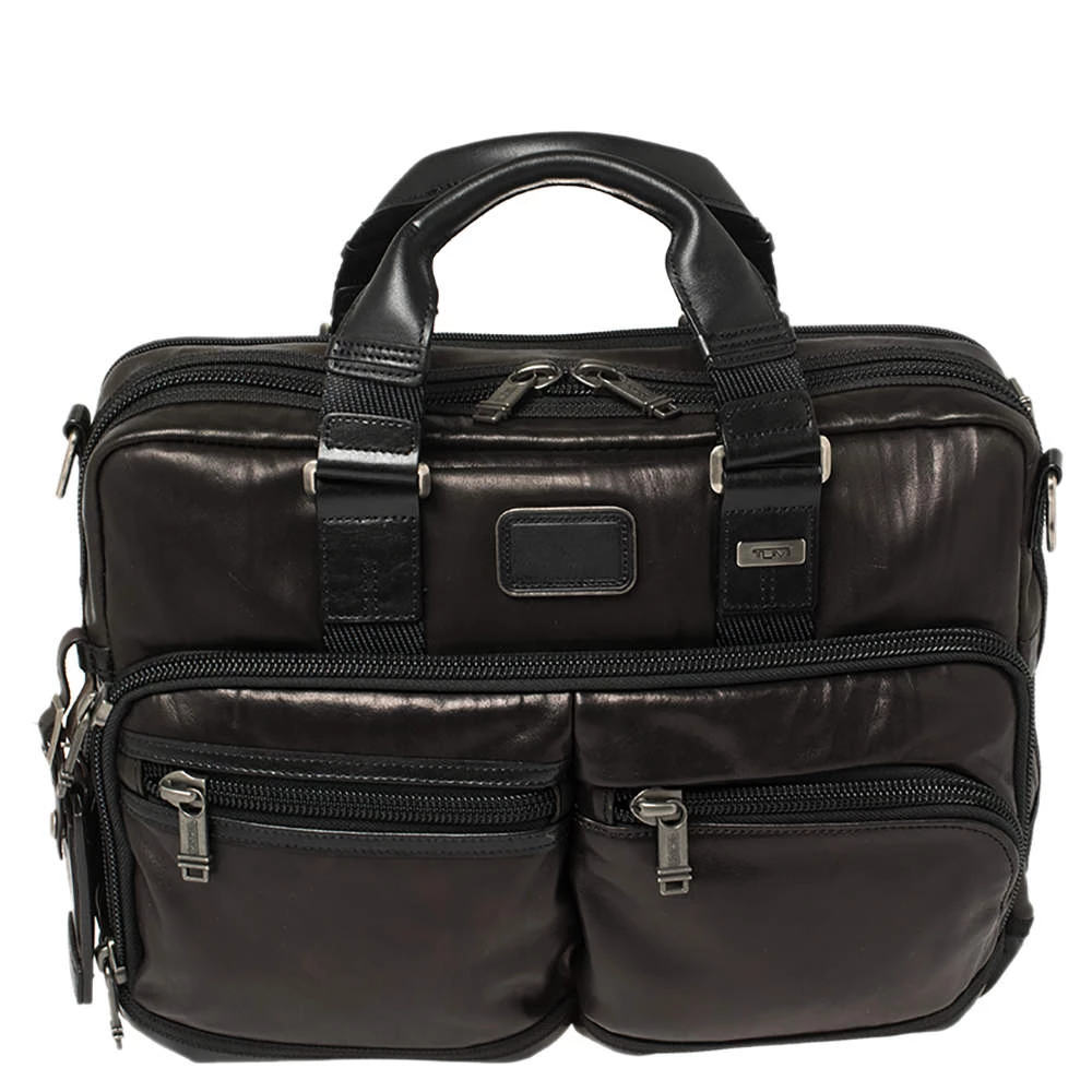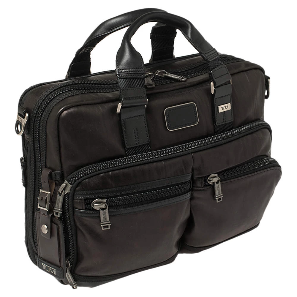 The Alpha Bravo Albany Slim design by TUMI is an ultra-functional choice to carry your essentials! Crafted using leather, the briefcase is perfect for frequent use. It includes two top handles and an adjustable shoulder strap. Aside from the multiple exterior pockets, the well-organized interior is nylon-lined and houses pockets.