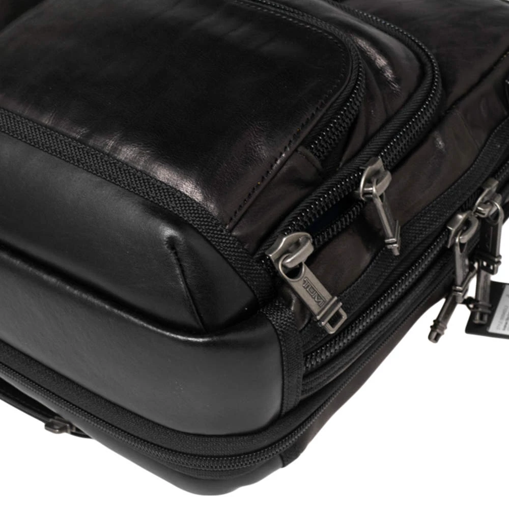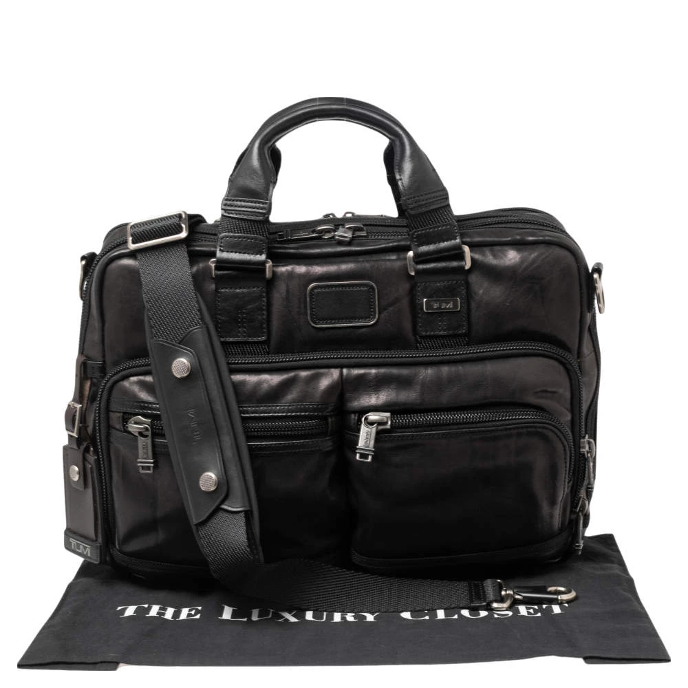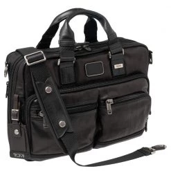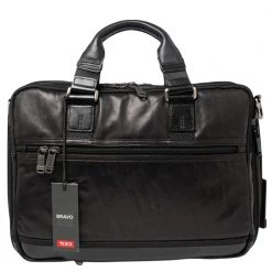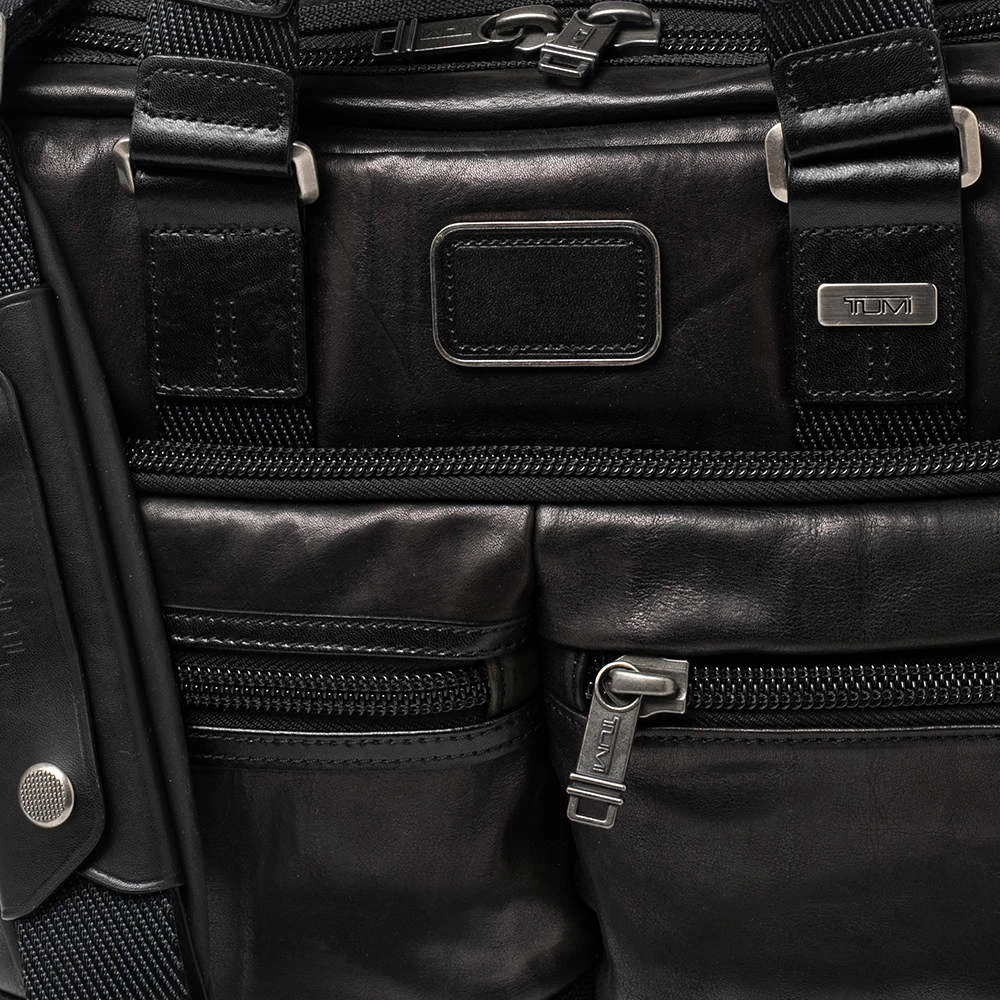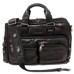 The Alpha Bravo Andersen Slim Commuter briefcase by TUMI is an ultra-functional choice to carry your essentials! Crafted using leather, the briefcase is perfect for frequent use. It includes two top handles and an adjustable shoulder strap. Aside from the multiple exterior pockets, the well-organized interior is nylon-lined and houses more pockets.