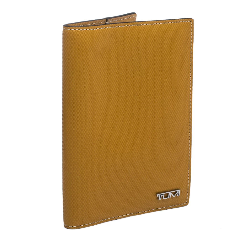 Lend a classy refinement with this elegant passport cover by Tumi. Available in an attractive yellow shade, this trendy piece is crafted from leather and will carry your passport with ease.